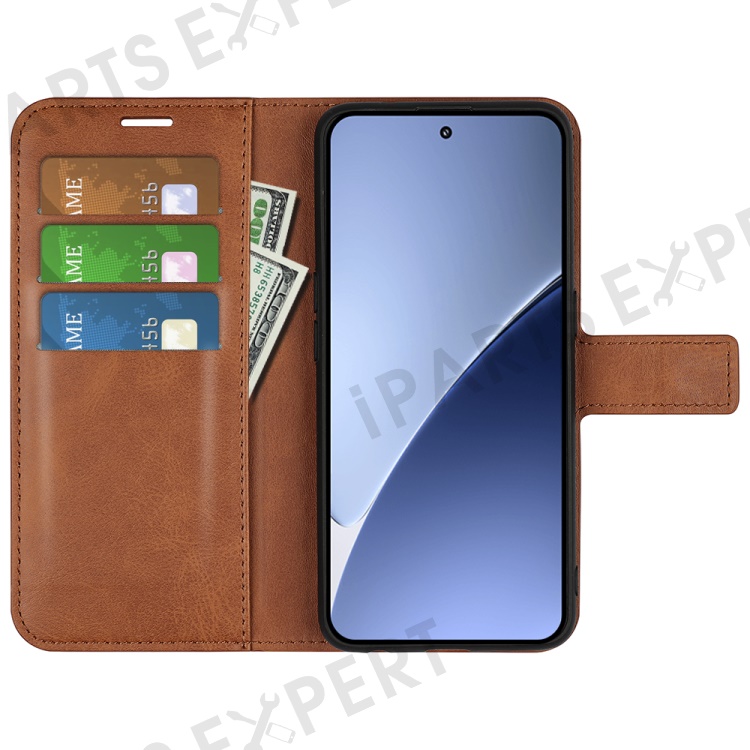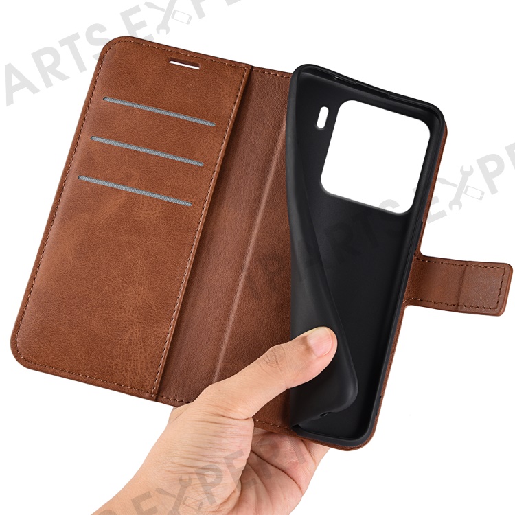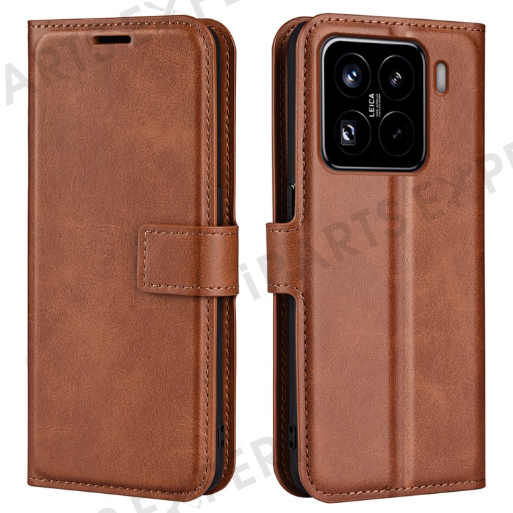 For Xiaomi 15 Pro Stand Case Anti-Scratch Calf Texture Leather Phone Cover - Light Brown