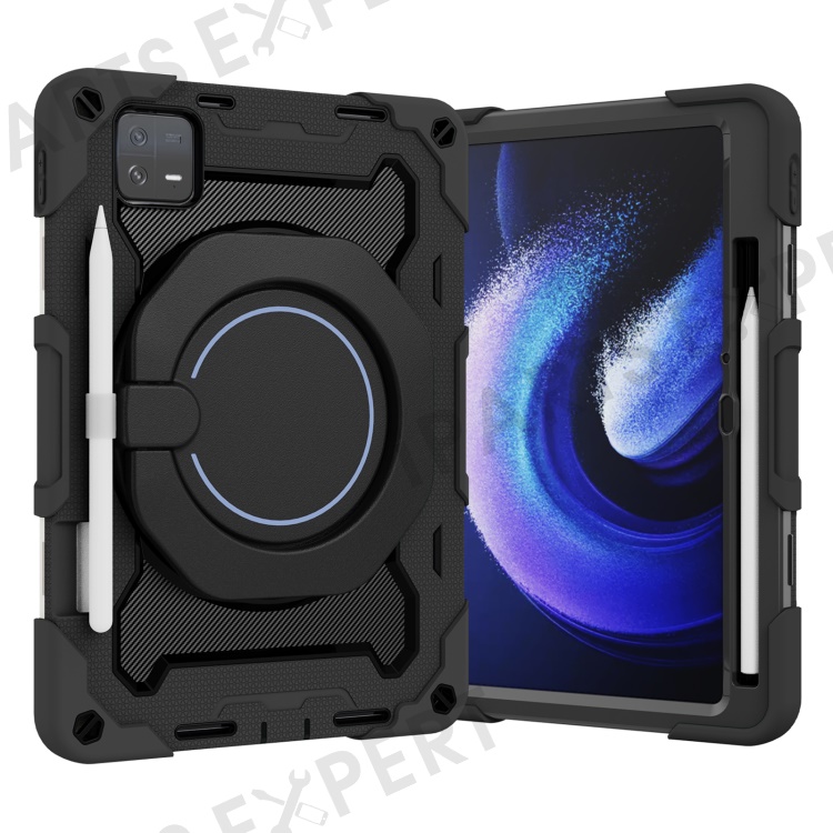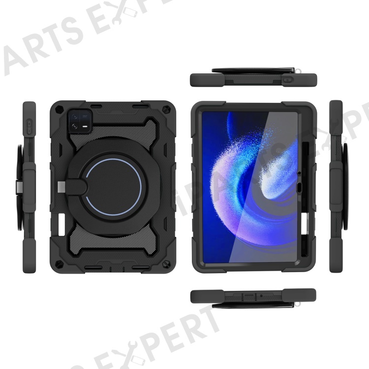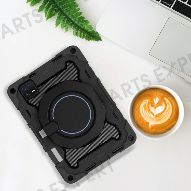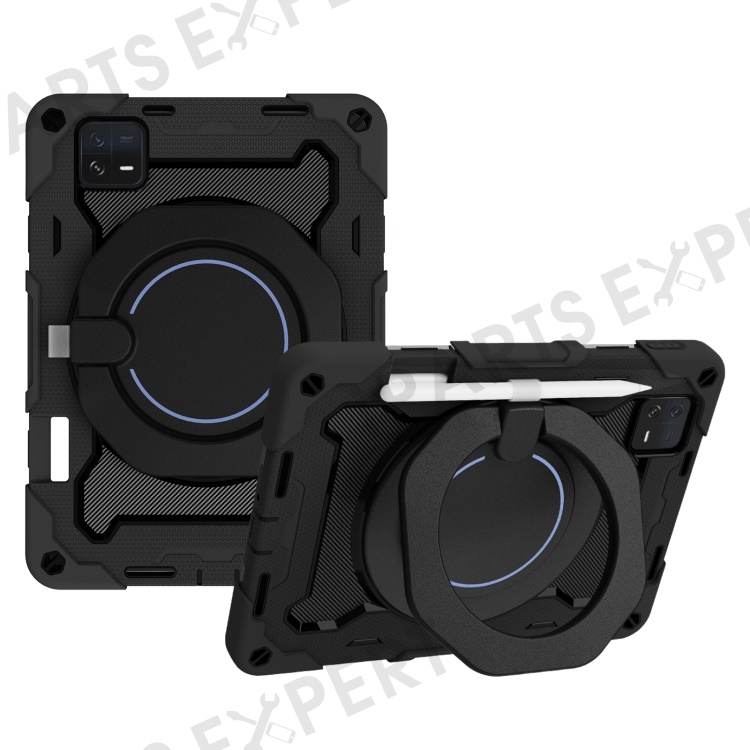 For Xiaomi Pad 6 PC + Silicone Protective Cover 360-degree Rotary Kickstand Drop-proof Tablet Case - Black