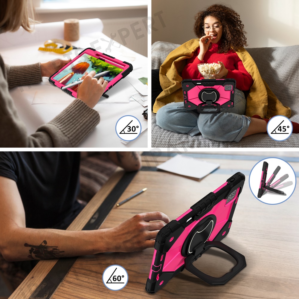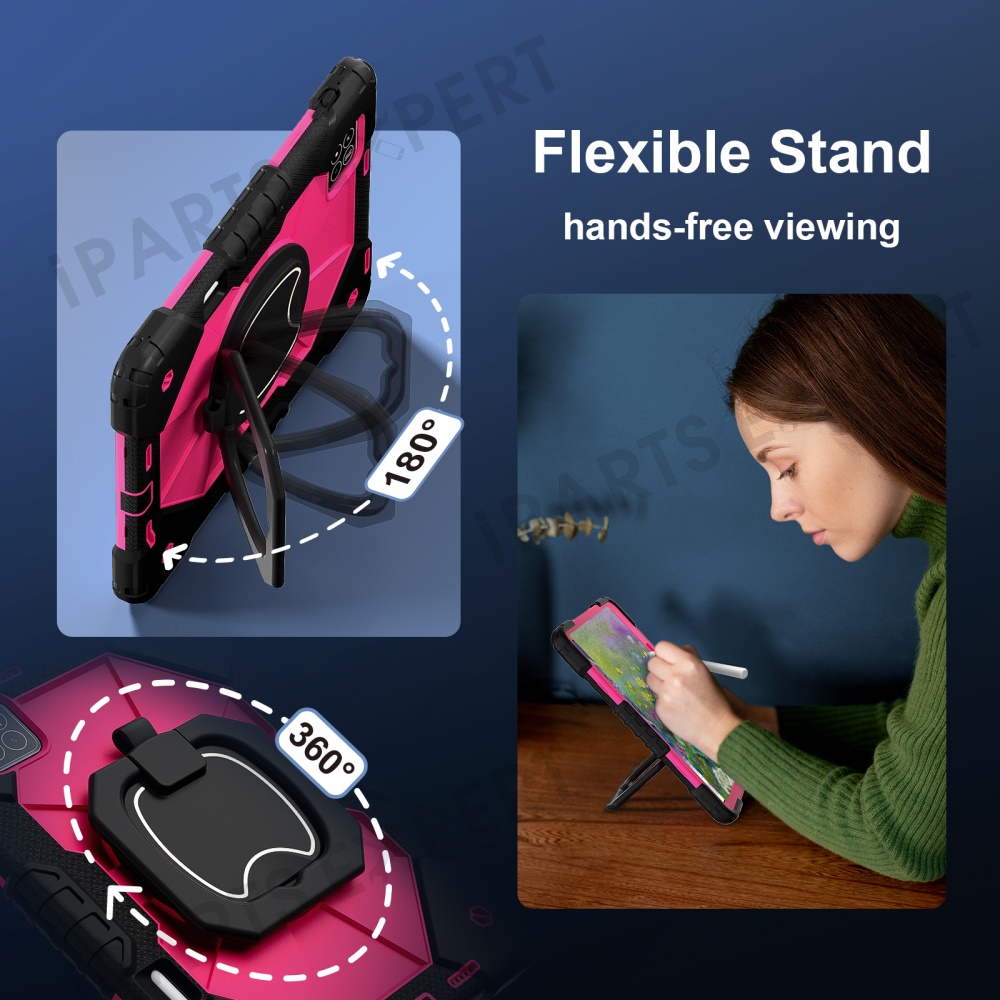 - 【360-Degree Kickstand】 Features an integrated 360-degree rotary kickstand, allowing hands-free viewing in both landscape and portrait modes, not only a kickstand, but also is a portable strap