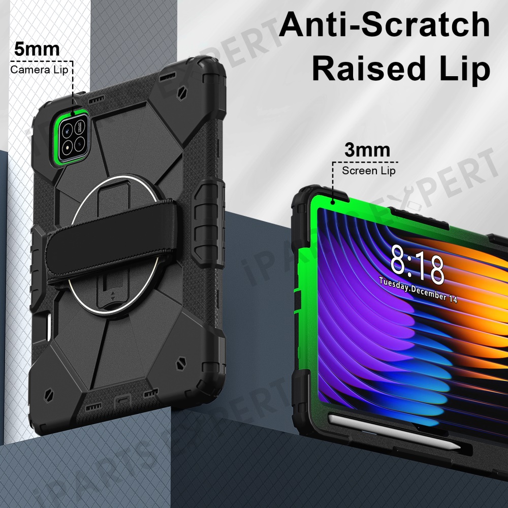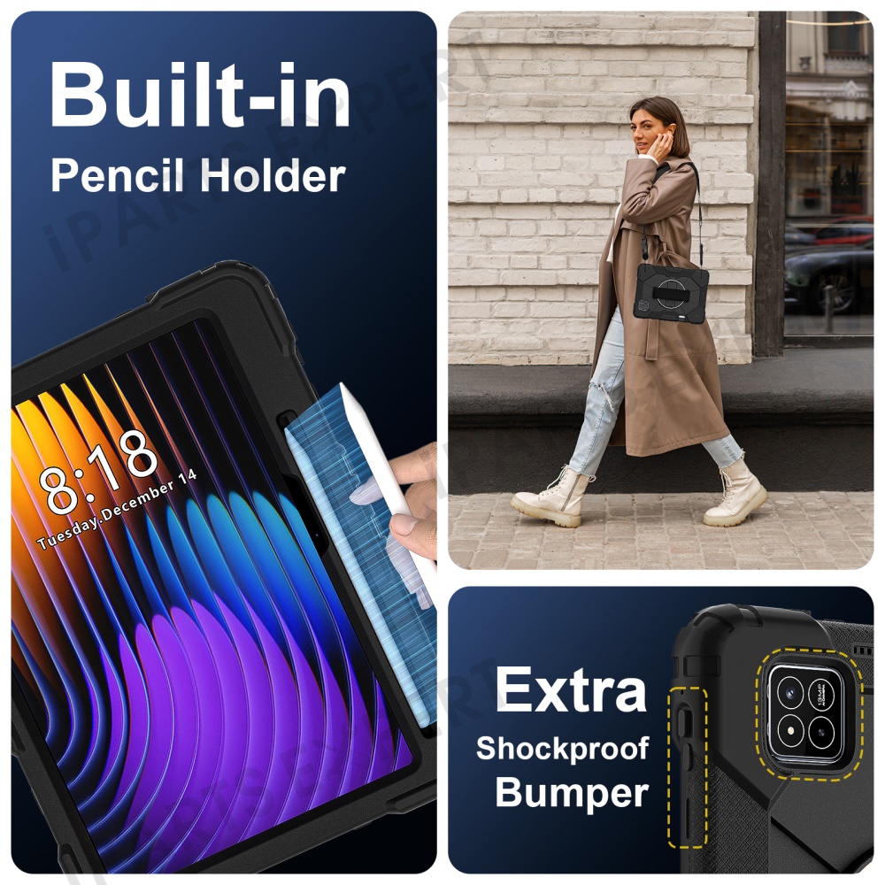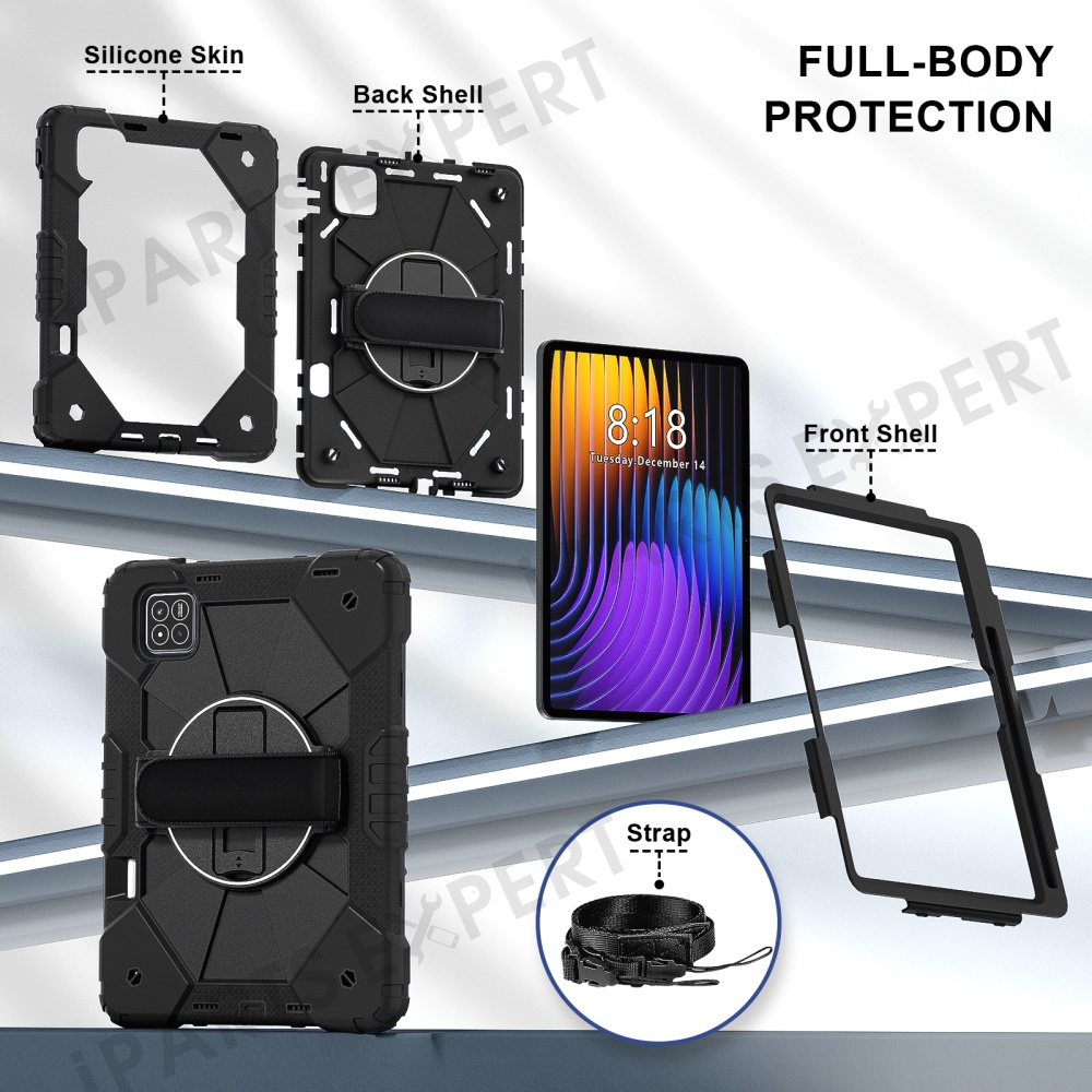 For Xiaomi Pad 7 Pro / Pad 7 Case Silicone + PC Kickstand Tablet Cover with Handy Strap - Black / Black