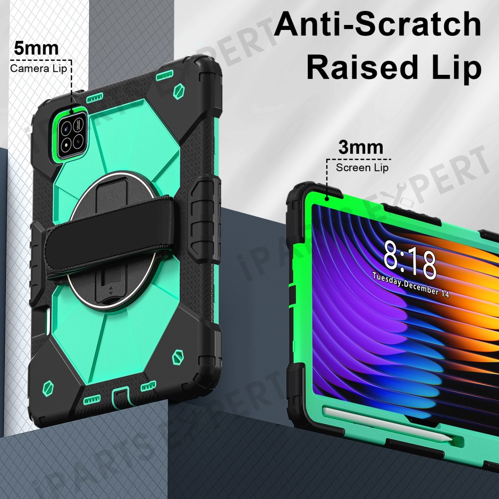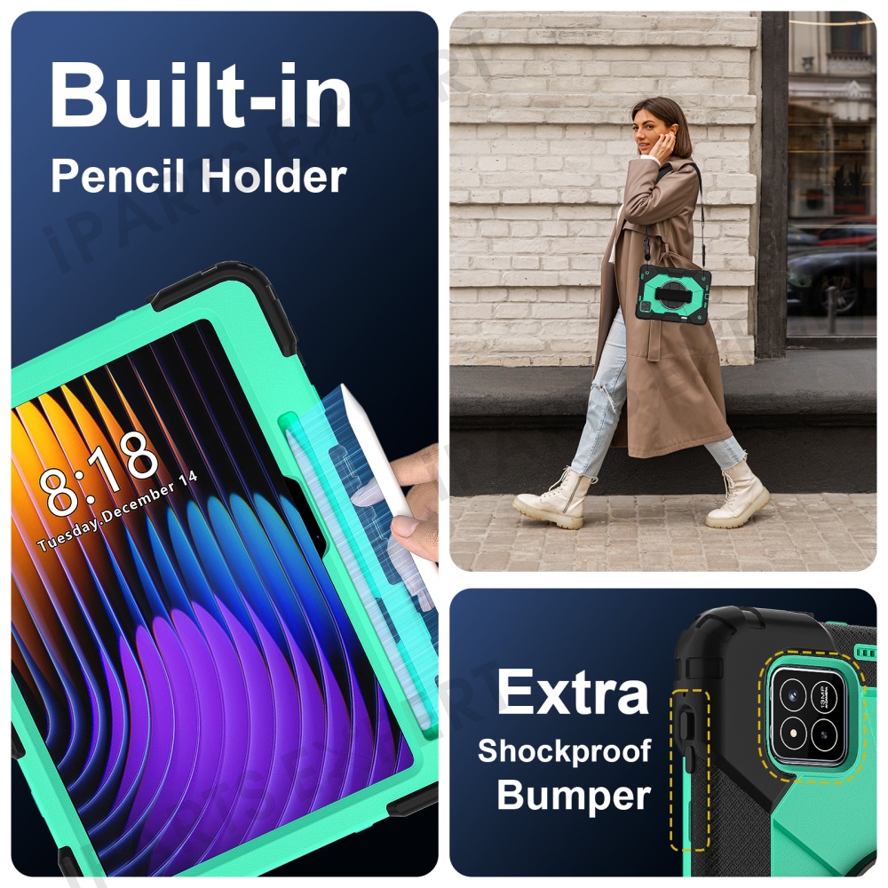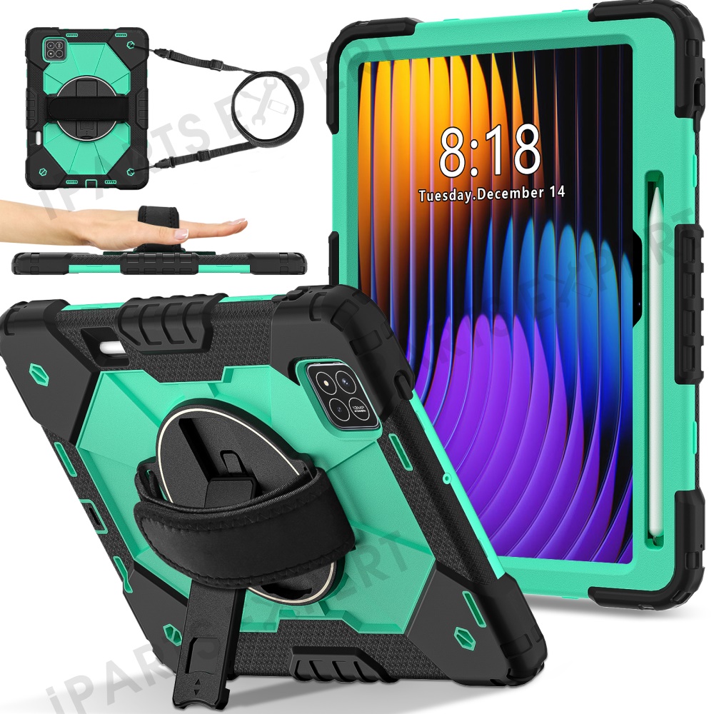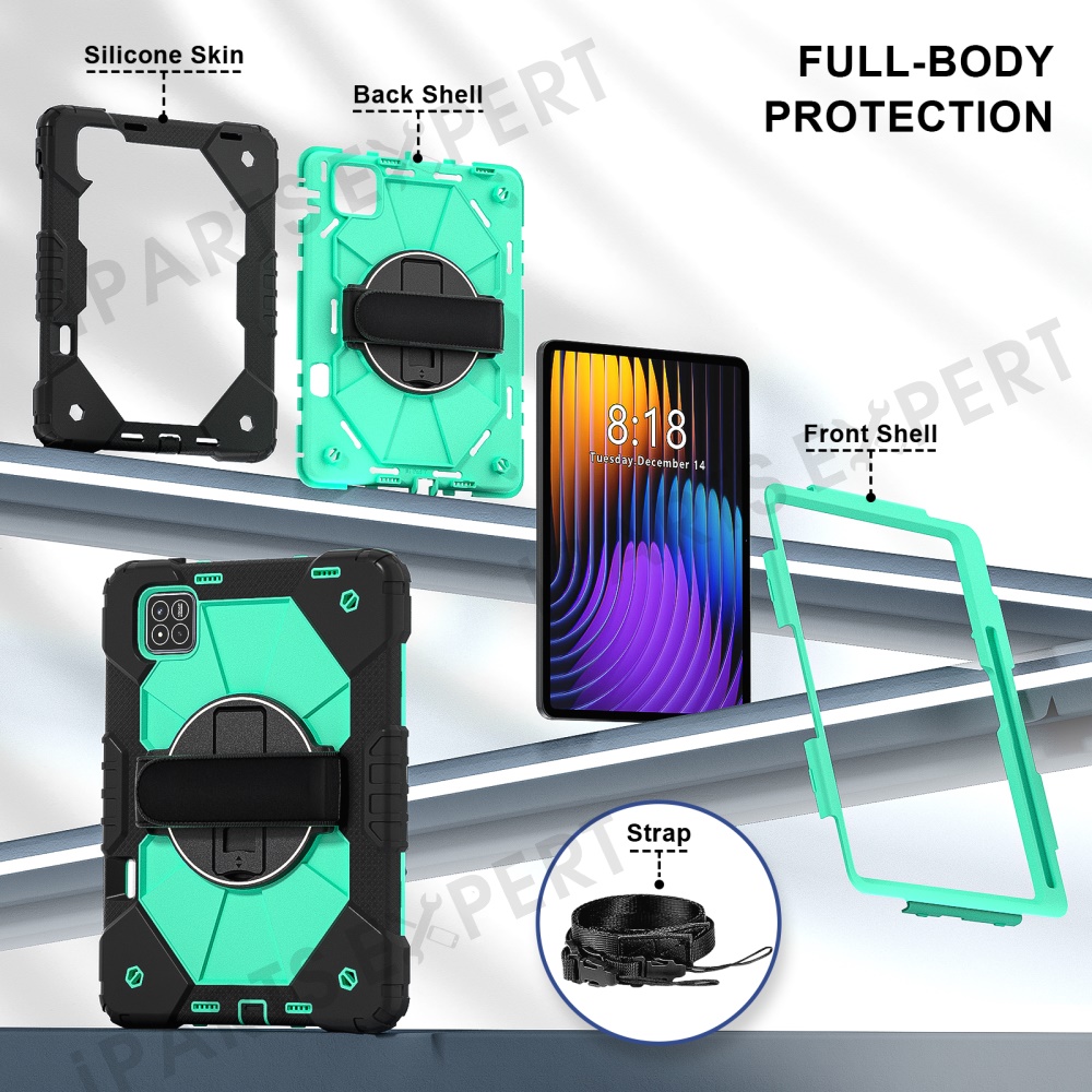 For Xiaomi Pad 7 Pro / Pad 7 Case Silicone + PC Kickstand Tablet Cover with Handy Strap - Black / Mint Green