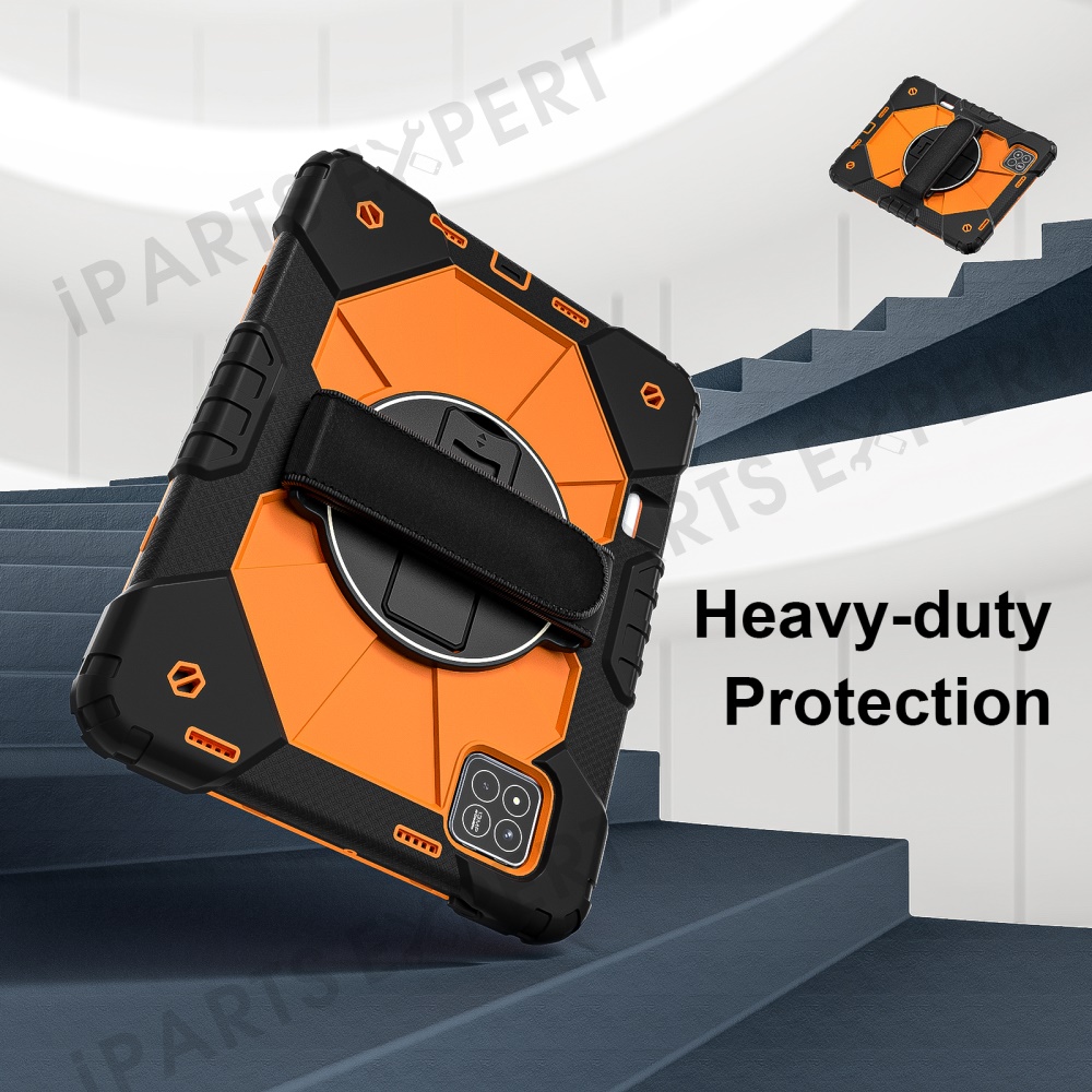 For Xiaomi Pad 7 Pro / Pad 7 Case Silicone + PC Kickstand Tablet Cover with Handy Strap - Black / Orange