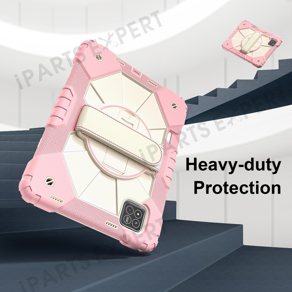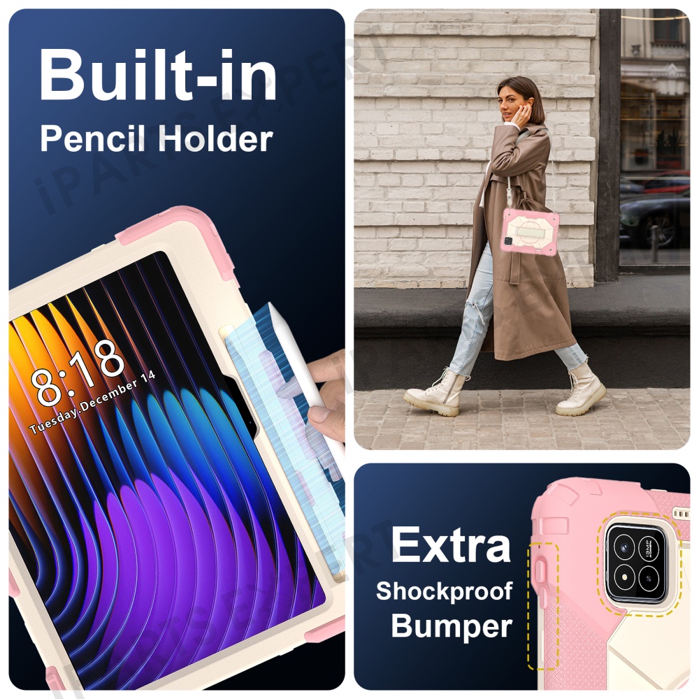 For Xiaomi Pad 7 Pro / Pad 7 Case Silicone + PC Kickstand Tablet Cover with Handy Strap - Rose Gold