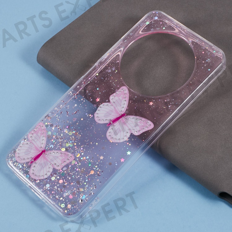 For Xiaomi Poco C75 4G / Redmi 14R 5G / Redmi 14C 4G Case Epoxy PVC Butterfly TPU Aesthetics Phone Cover - Pink