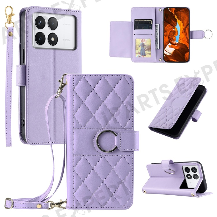 For Xiaomi Poco F6 Pro 5G / Redmi K70 5G / K70 Pro 5G Crossbody Leather Case Wallet Stand Rhombus Mobile Cover - Purple