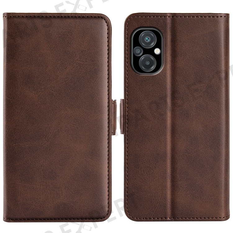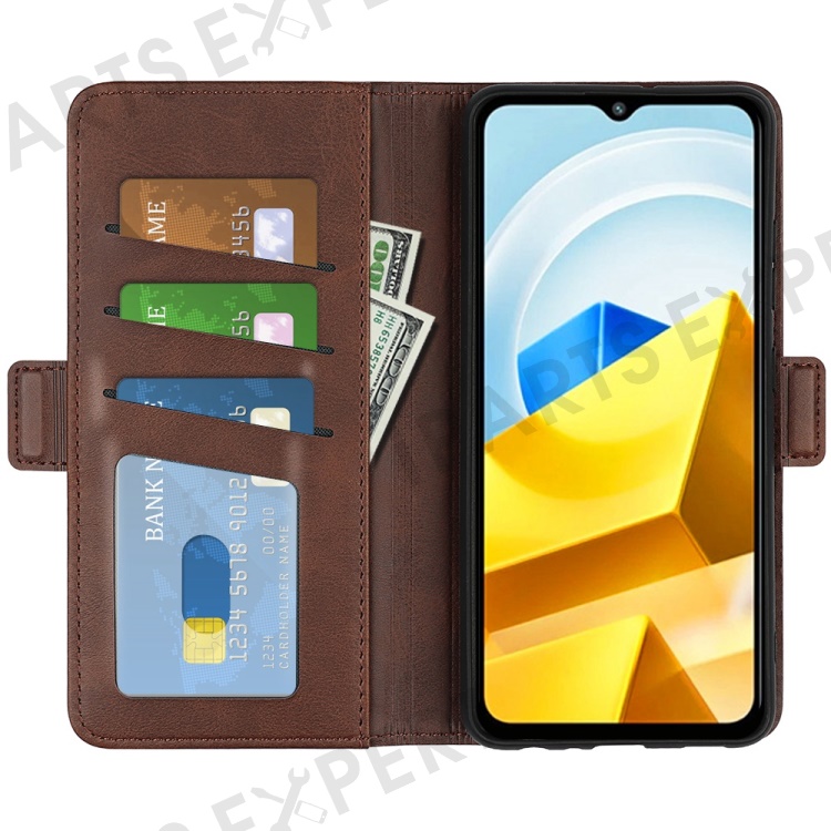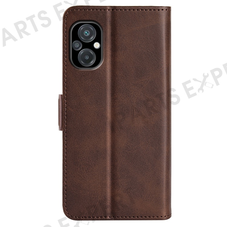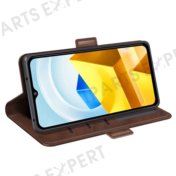 For Xiaomi Poco M5 4G Calf Textured PU Leather Flip Stand Phone Wallet Case Dual Magnetic Clasp Protective Shell - Brown