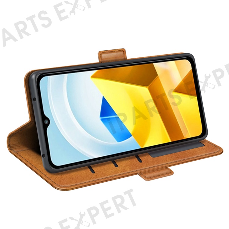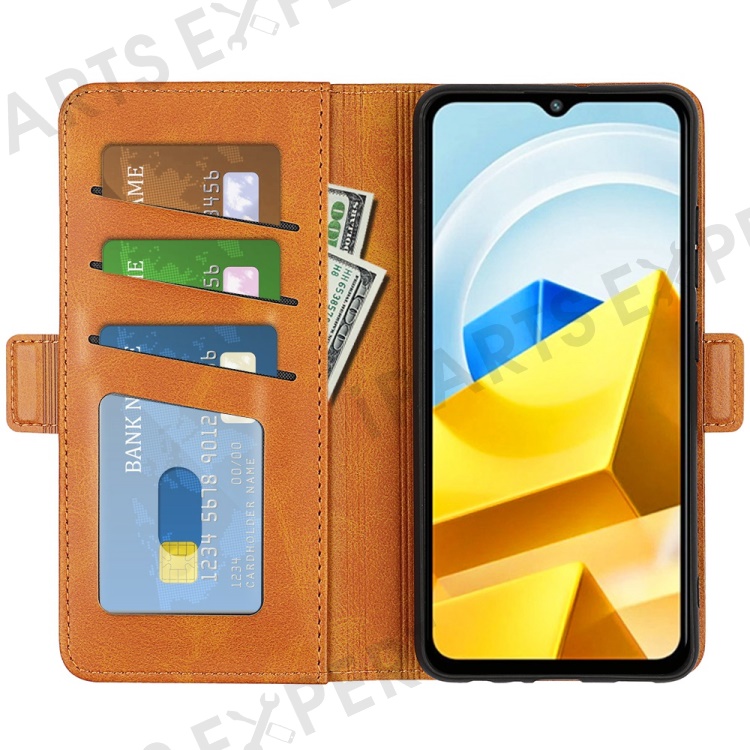 For Xiaomi Poco M5 4G Calf Textured PU Leather Flip Stand Phone Wallet Case Dual Magnetic Clasp Protective Shell - Yellow