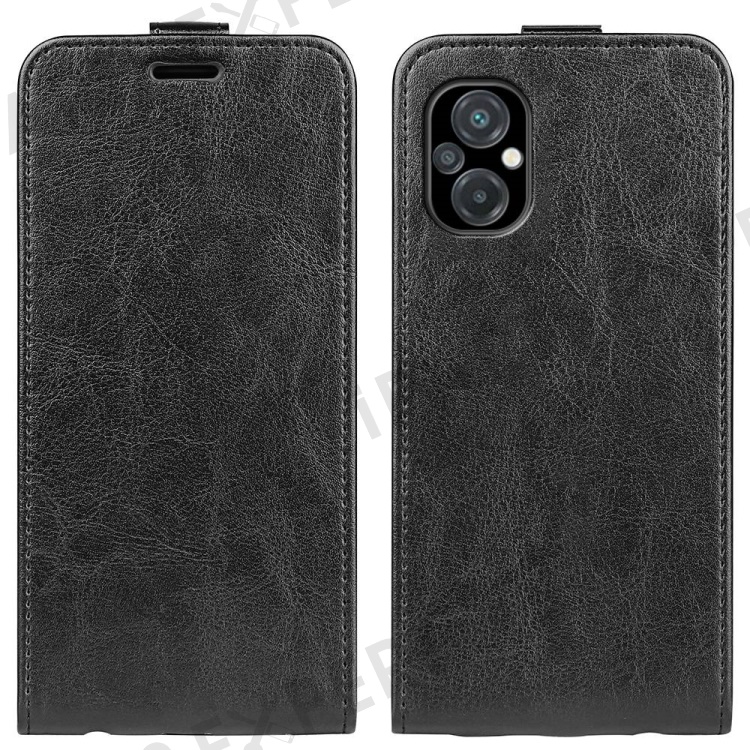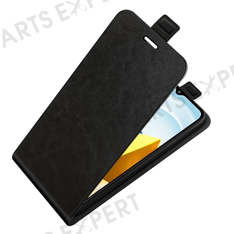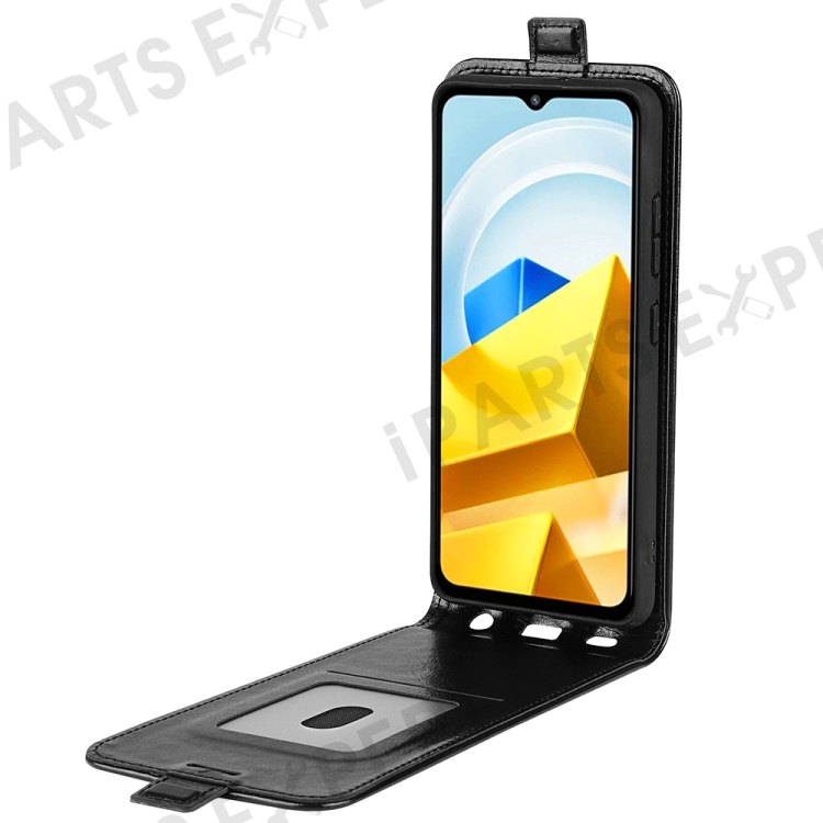 For Xiaomi Poco M5 4G Crazy Horse Texture PU Leather Case Magnetic Closure Vertical Flip Card Holder Phone Cover - Black