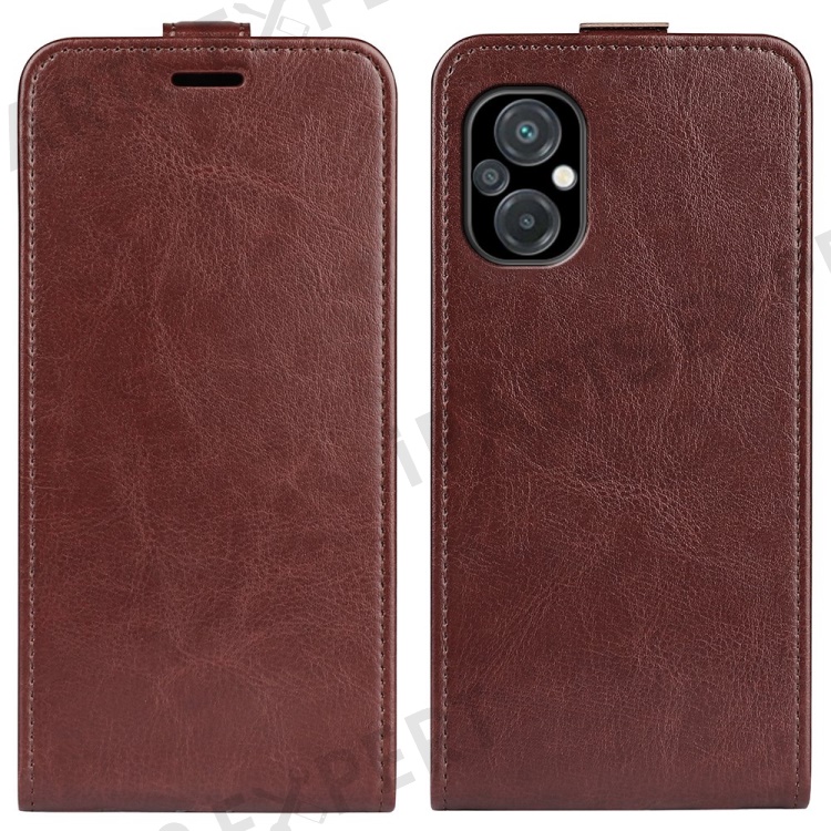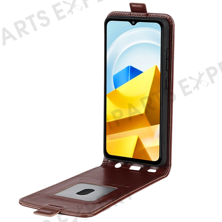 For Xiaomi Poco M5 4G Crazy Horse Texture PU Leather Case Magnetic Closure Vertical Flip Card Holder Phone Cover - Brown