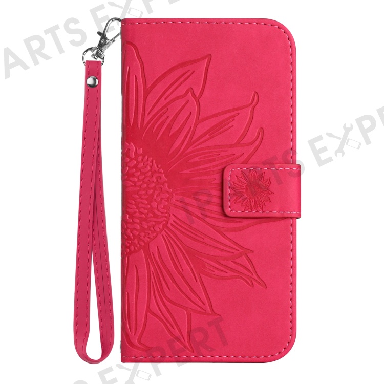 For Xiaomi Poco M5 4G / M5 5G / M4 5G HT04 Imprinted Sunflower Wallet Case Skin-Touch PU Leather Stand Phone Case with Hand Strap - Rose