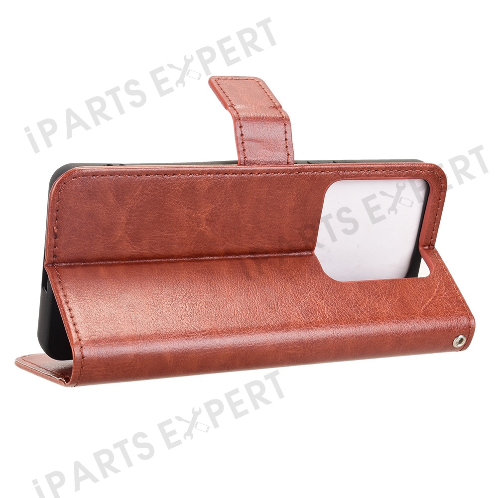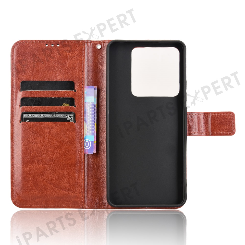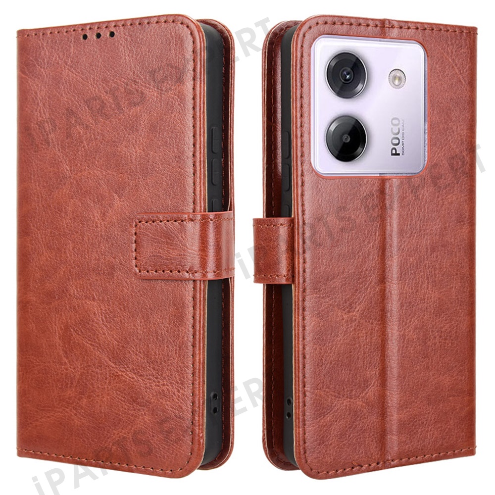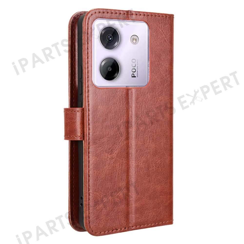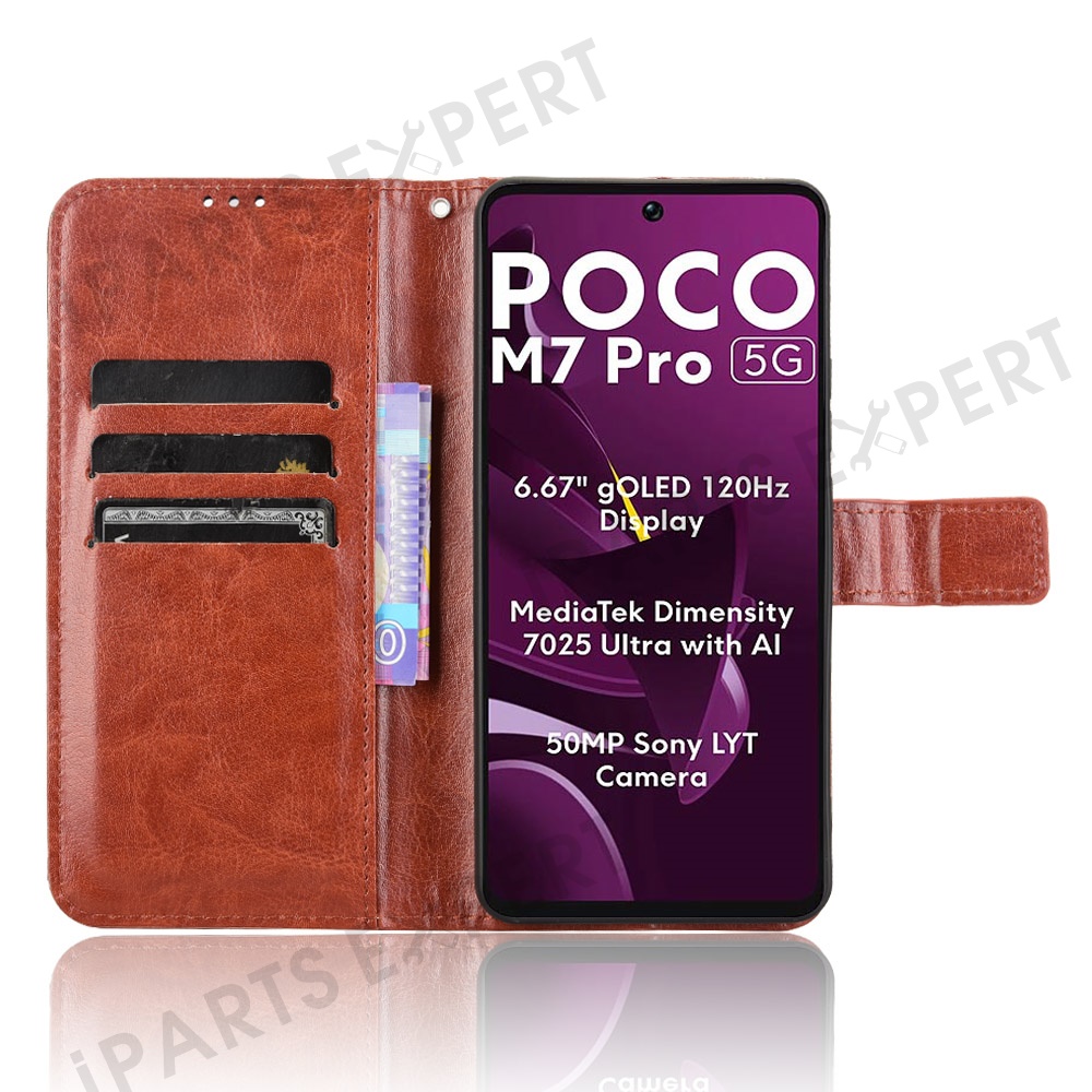 For Xiaomi Poco M7 Pro 5G Case Crazy Horse Texture PU Leather Phone Wallet Cover - Brown