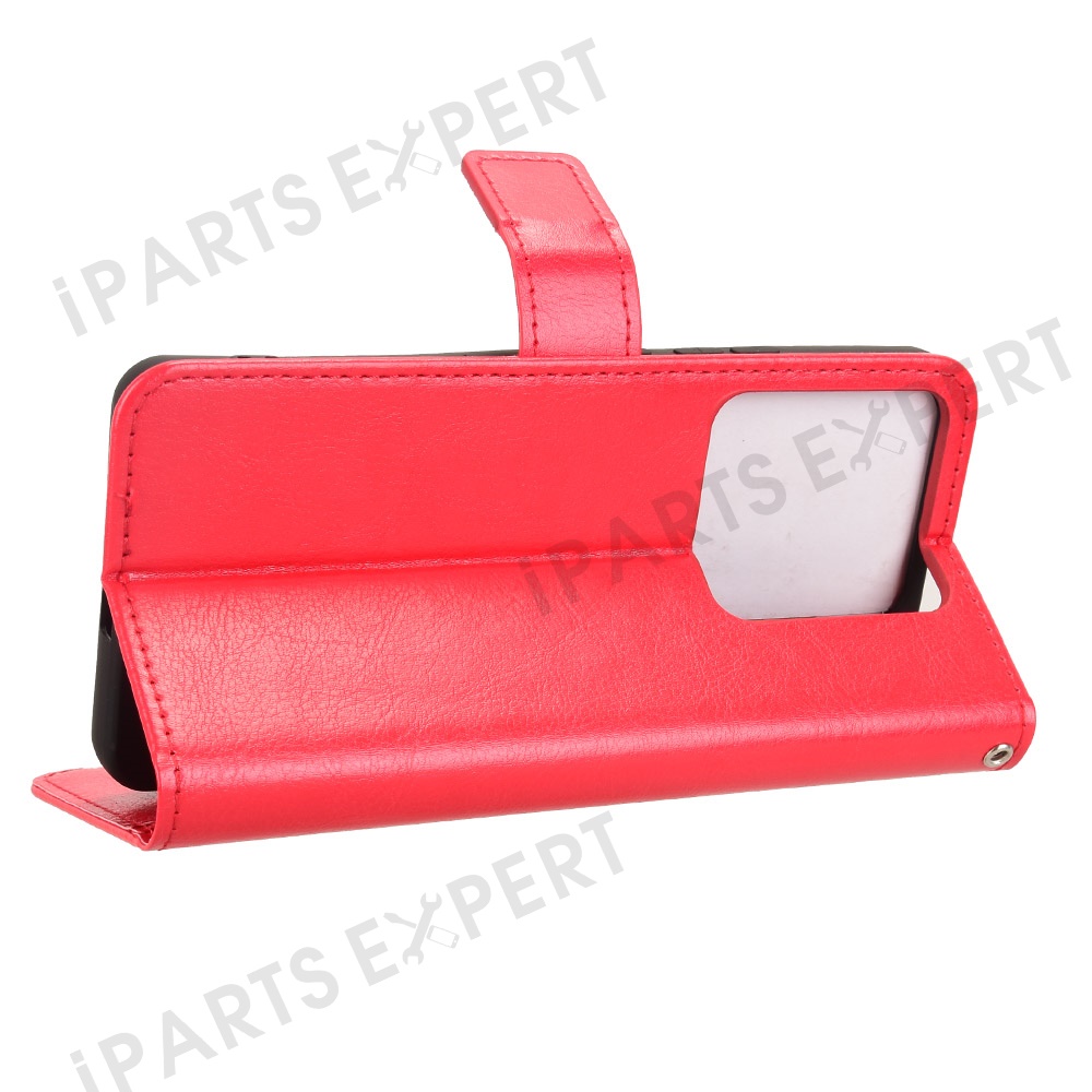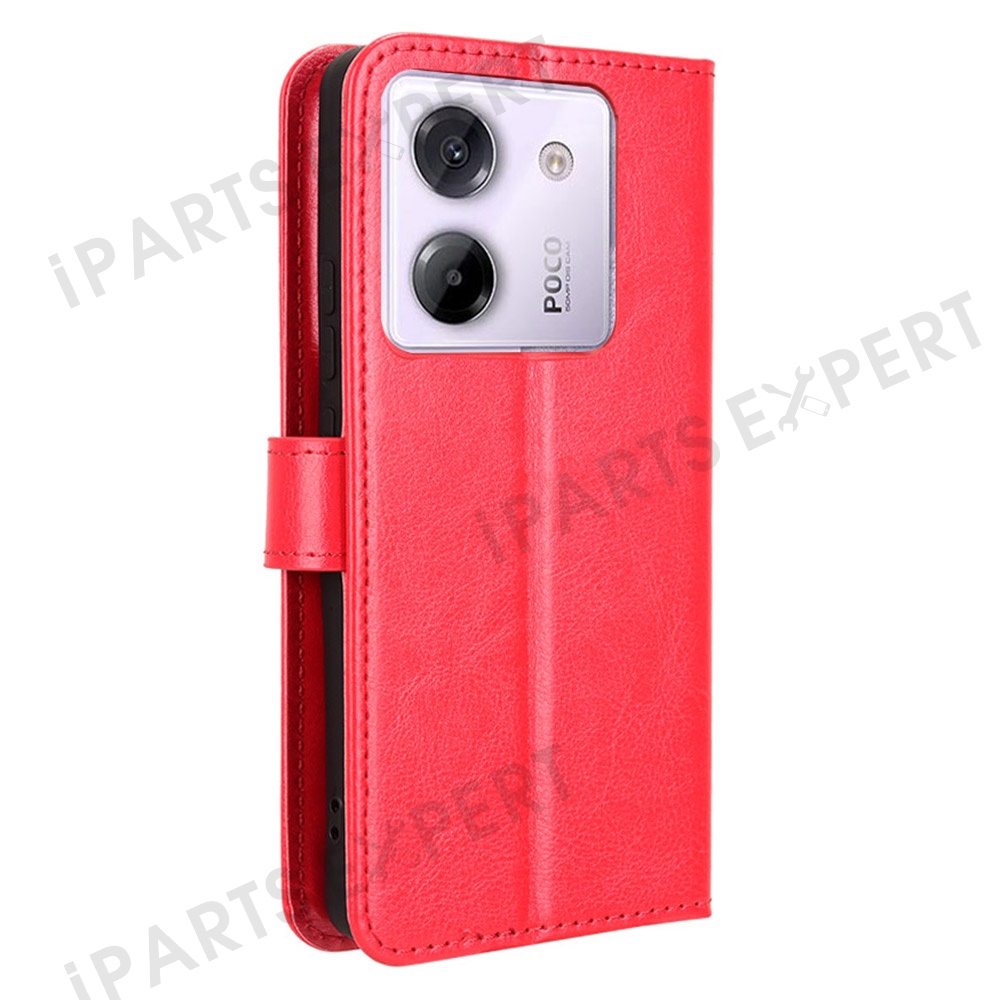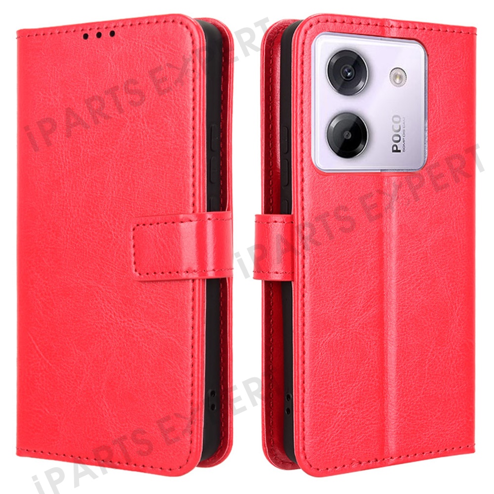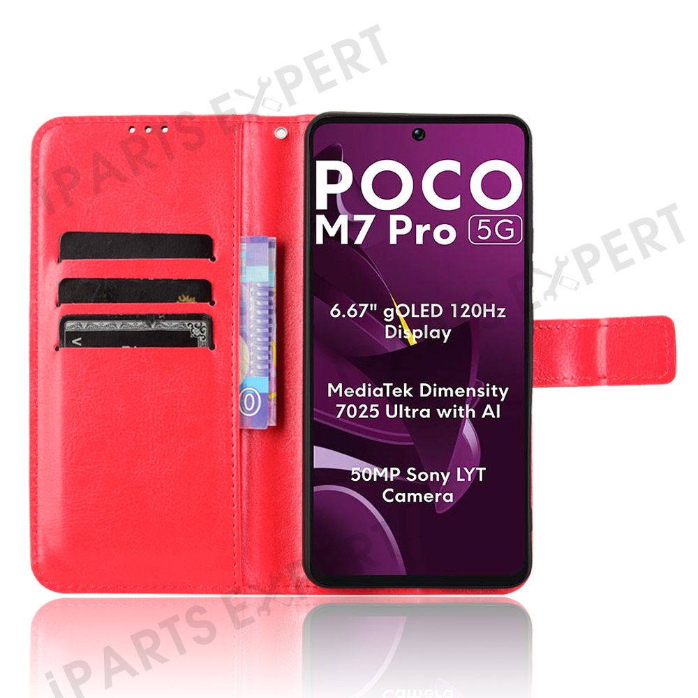 For Xiaomi Poco M7 Pro 5G Case Crazy Horse Texture PU Leather Phone Wallet Cover - Red