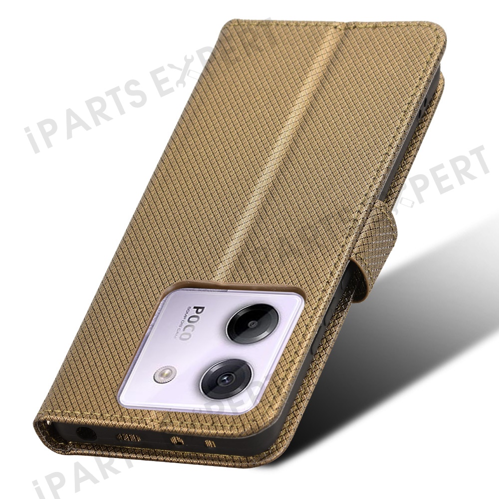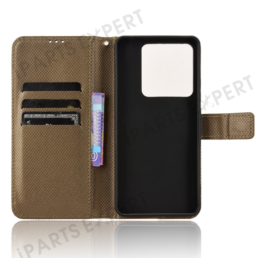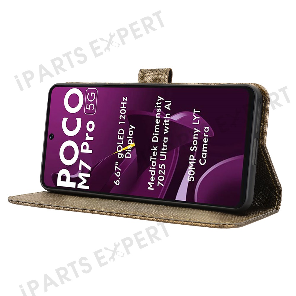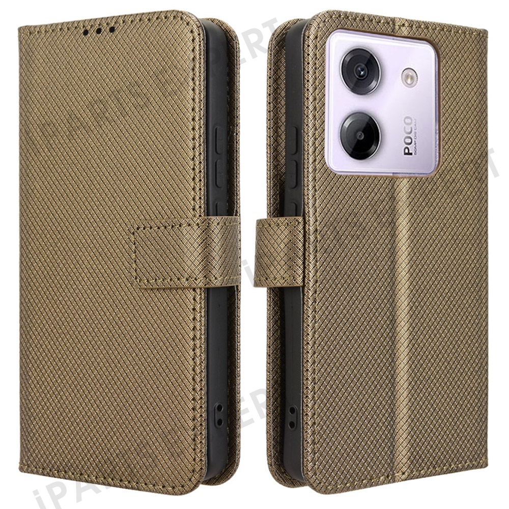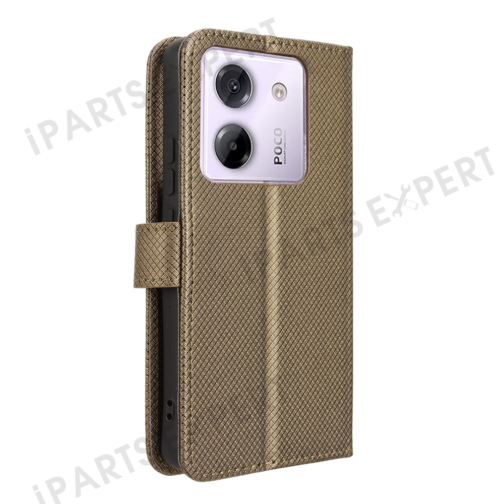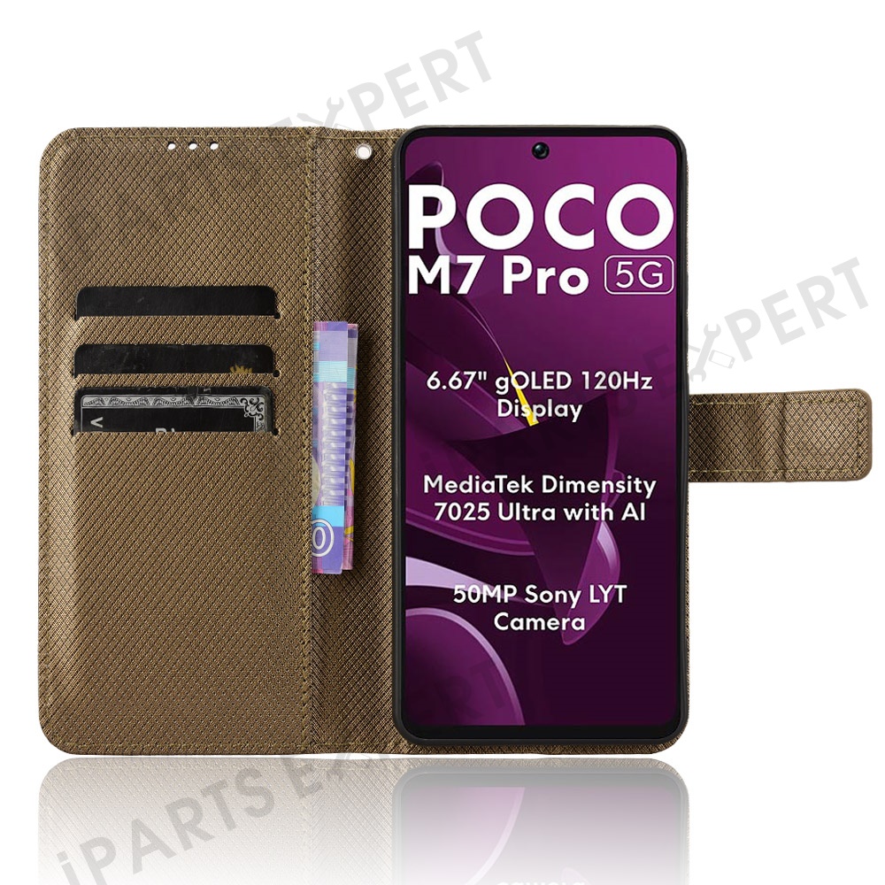 For Xiaomi Poco M7 Pro 5G Case PU Leather Diamond Texture Wallet Phone Cover - Brown