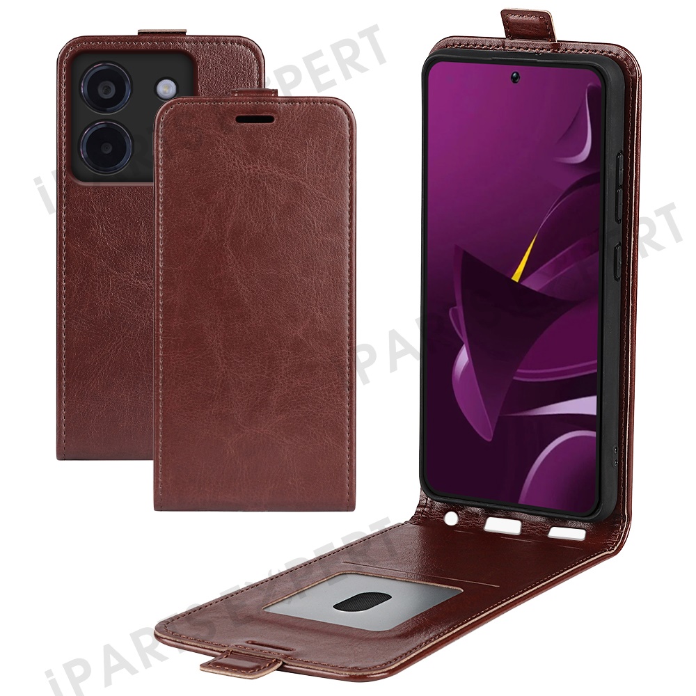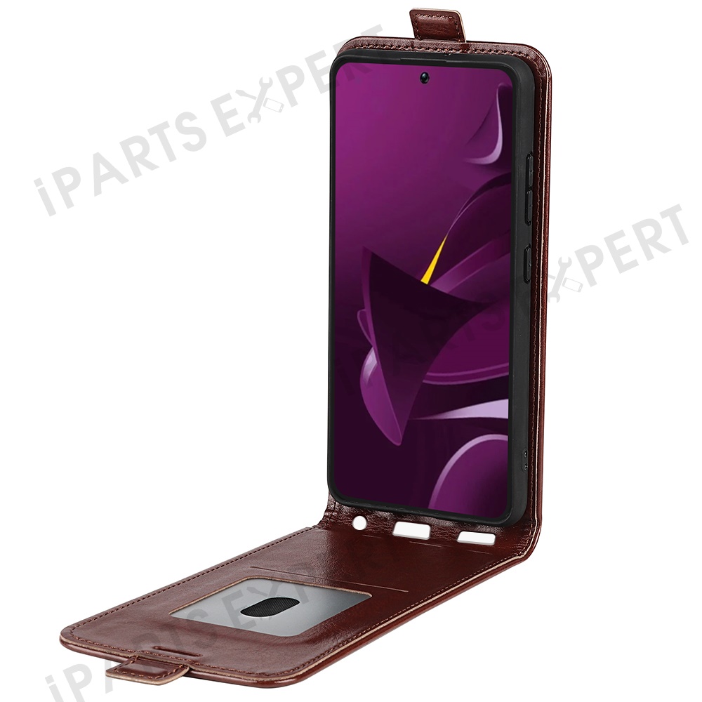 For Xiaomi Poco M7 Pro 5G Case with Card Slots Vertical Flip Leather Phone Cover - Brown