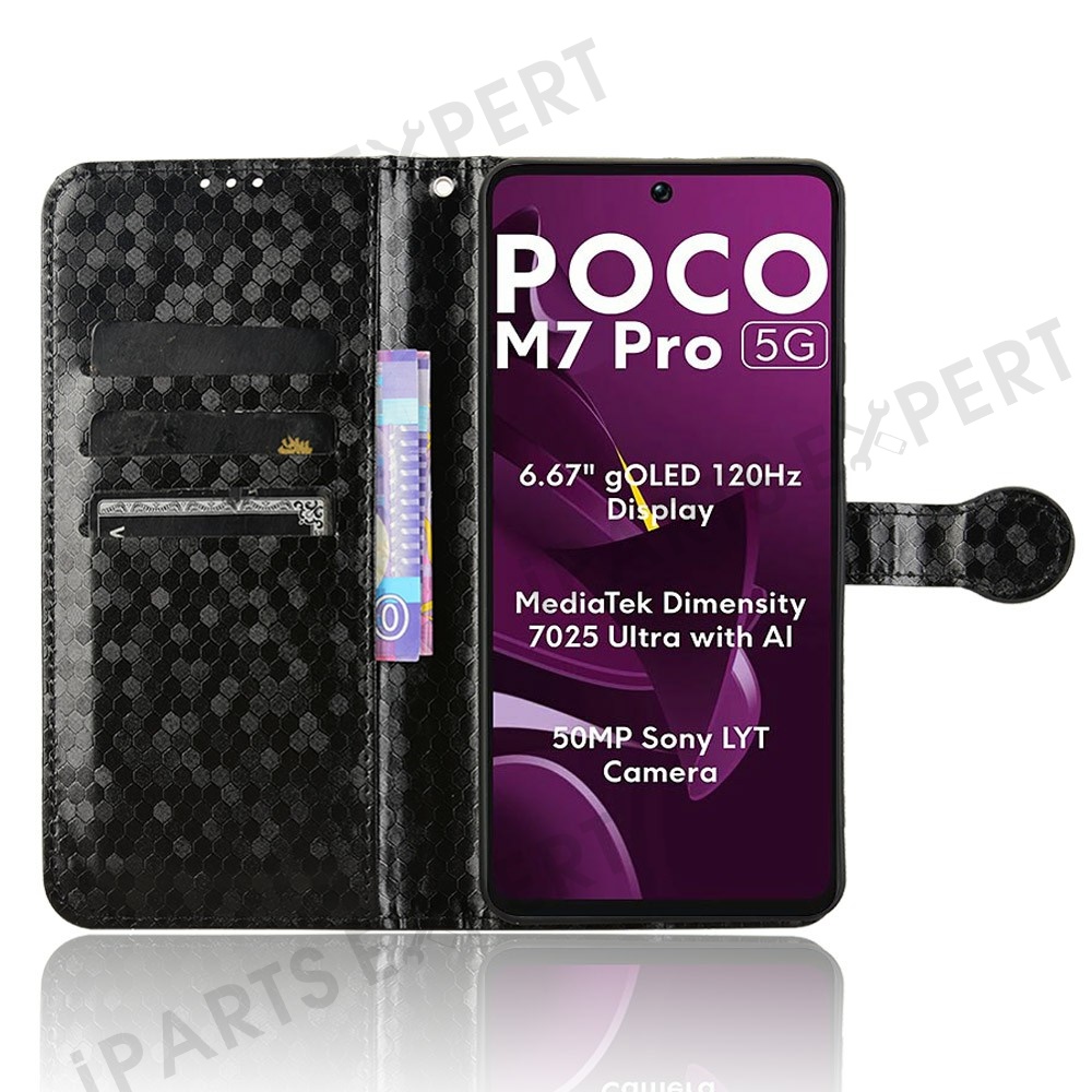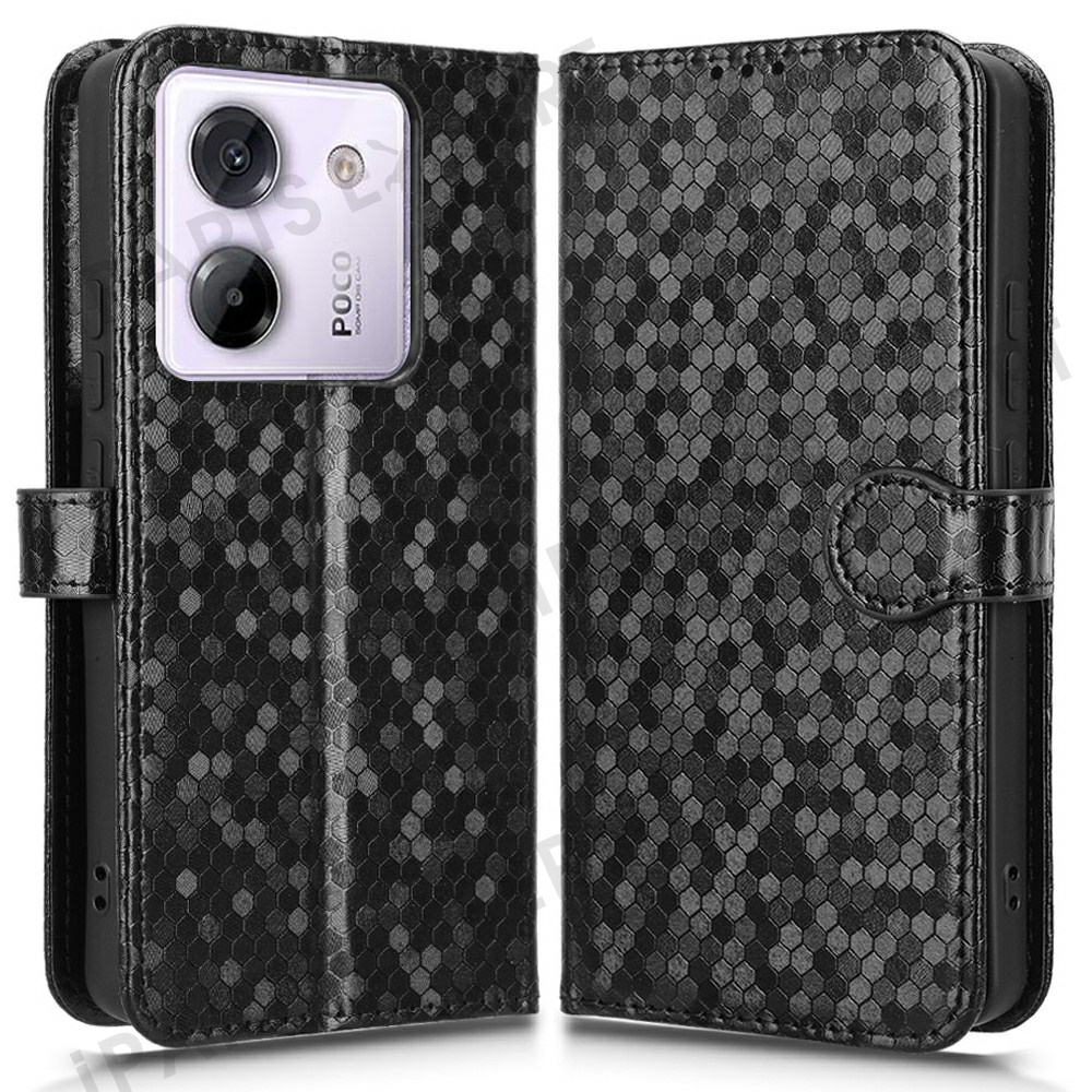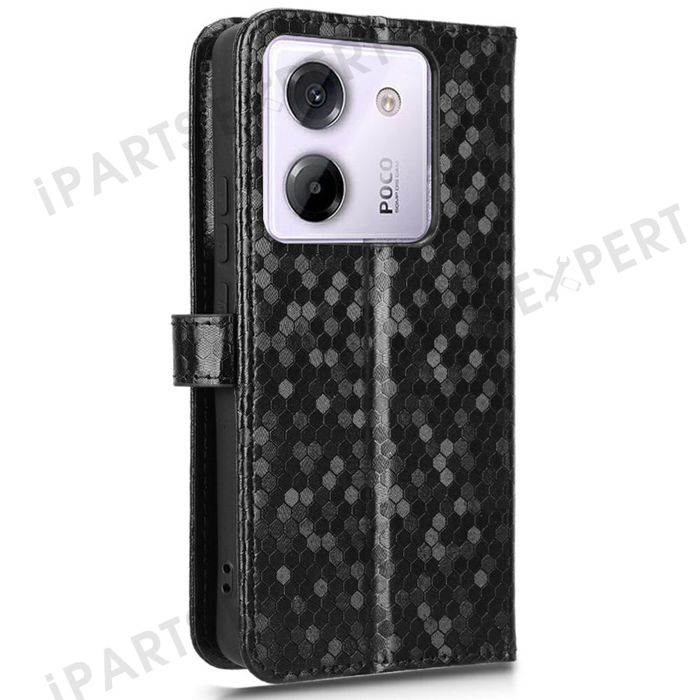 For Xiaomi Poco M7 Pro 5G / Redmi Note 14 5G Wallet Case Dot Pattern Imprint PU Leather Phone Cover - Black