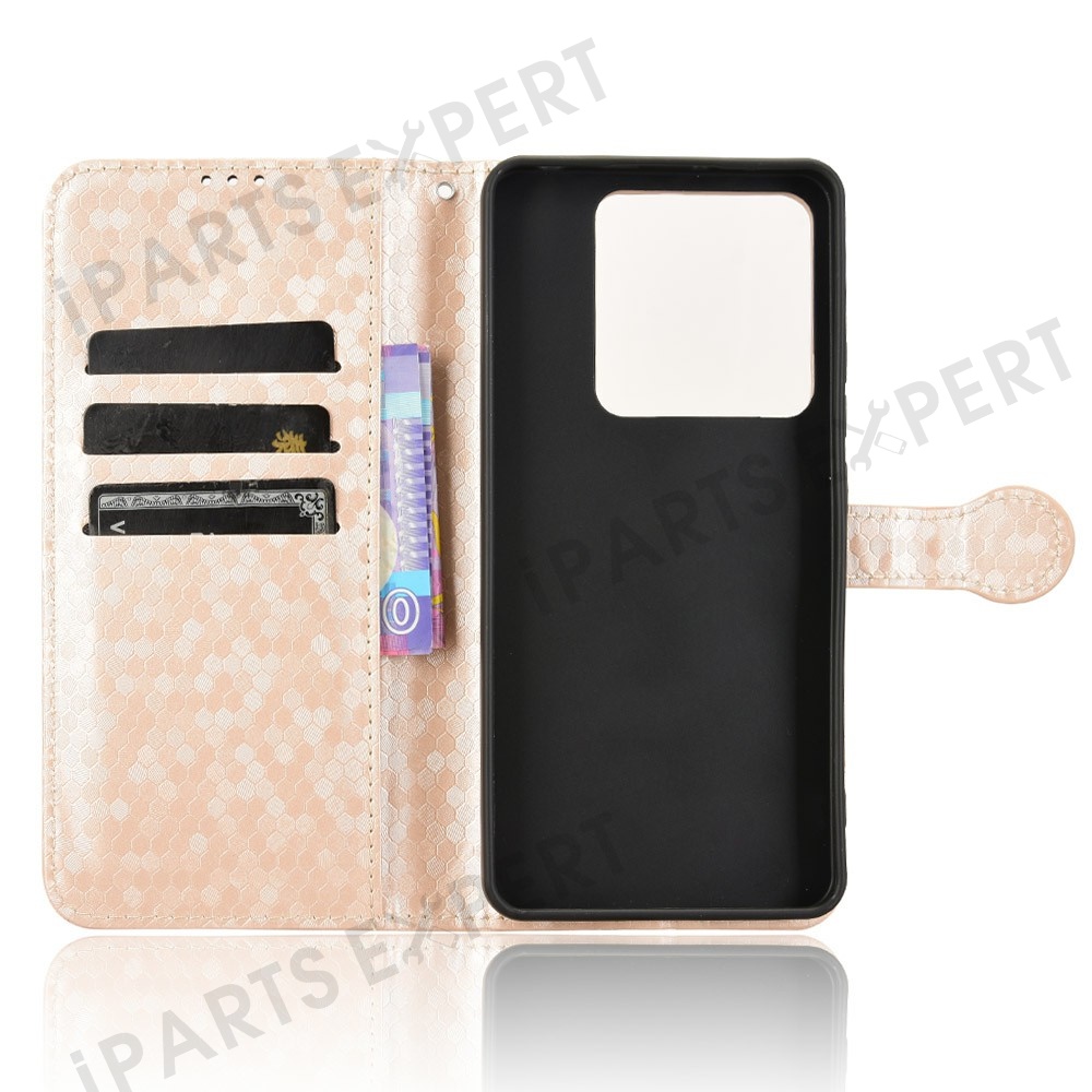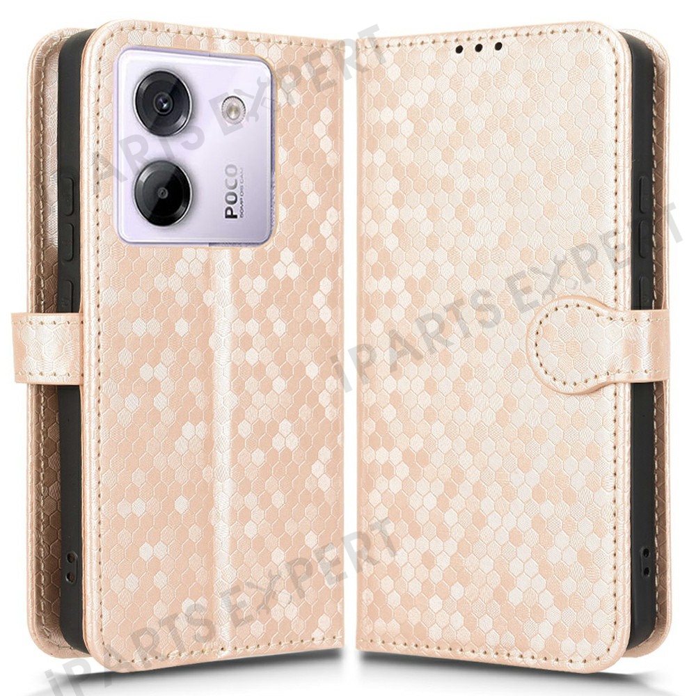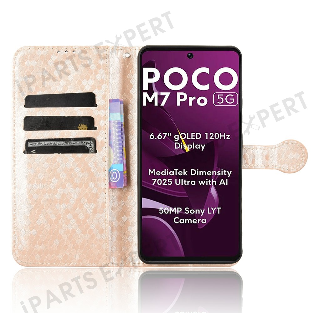 For Xiaomi Poco M7 Pro 5G / Redmi Note 14 5G Wallet Case Dot Pattern Imprint PU Leather Phone Cover - Rose Gold