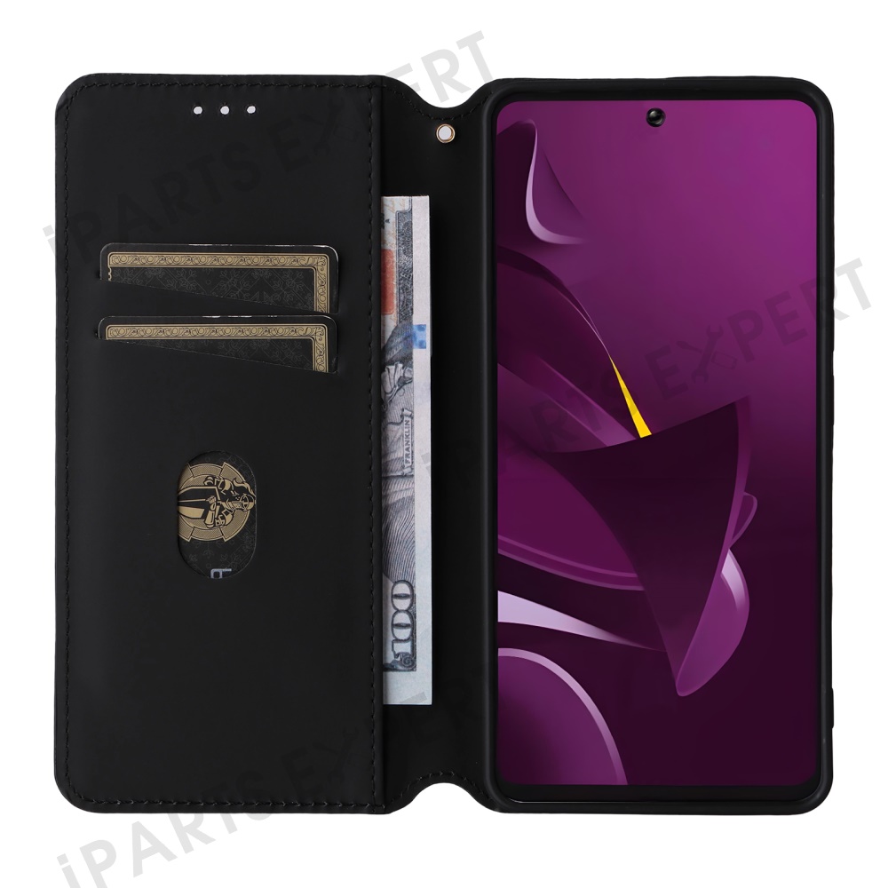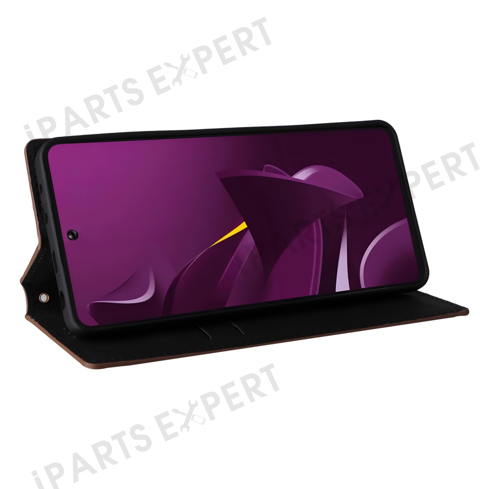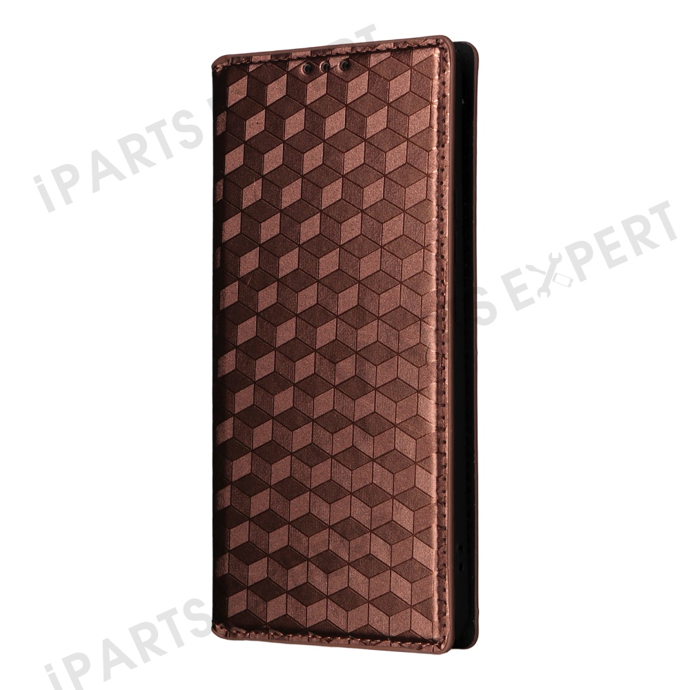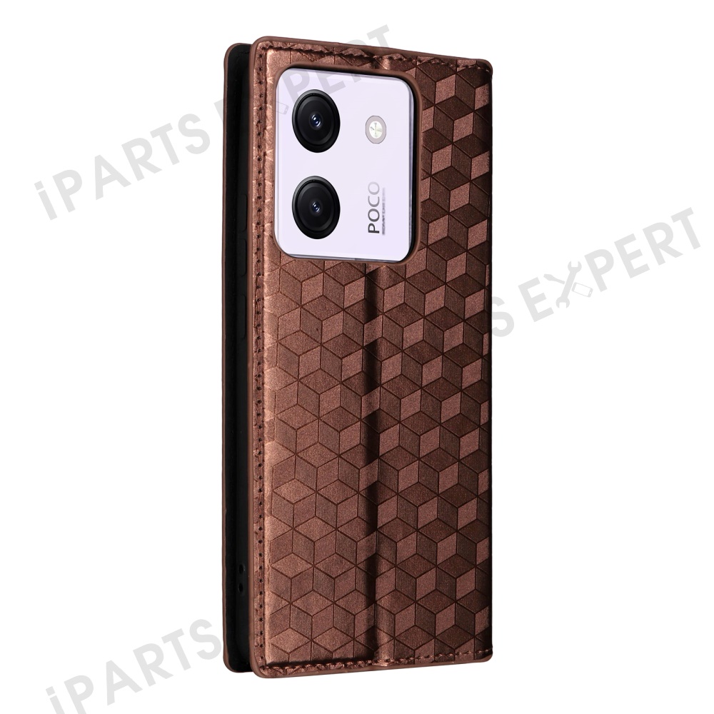 For Xiaomi Poco M7 Pro 5G Wallet Case Rhombus Imprinted Leather Phone Cover - Brown