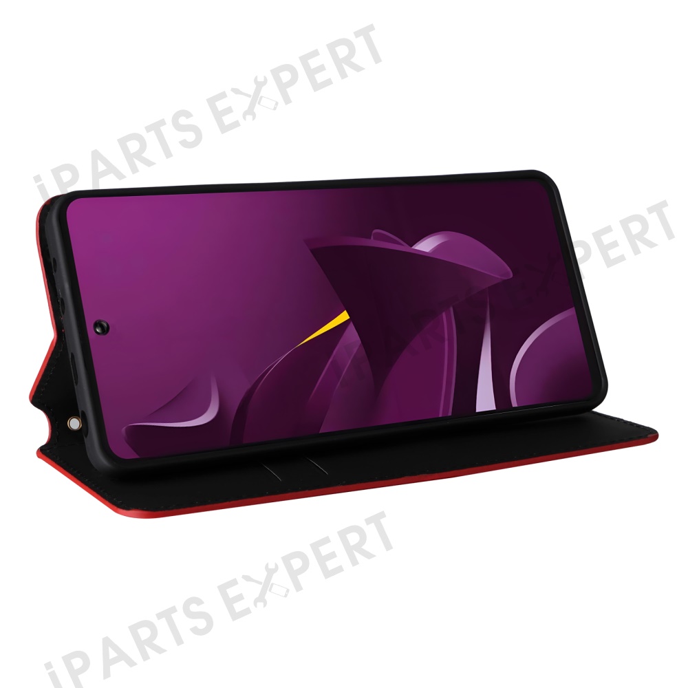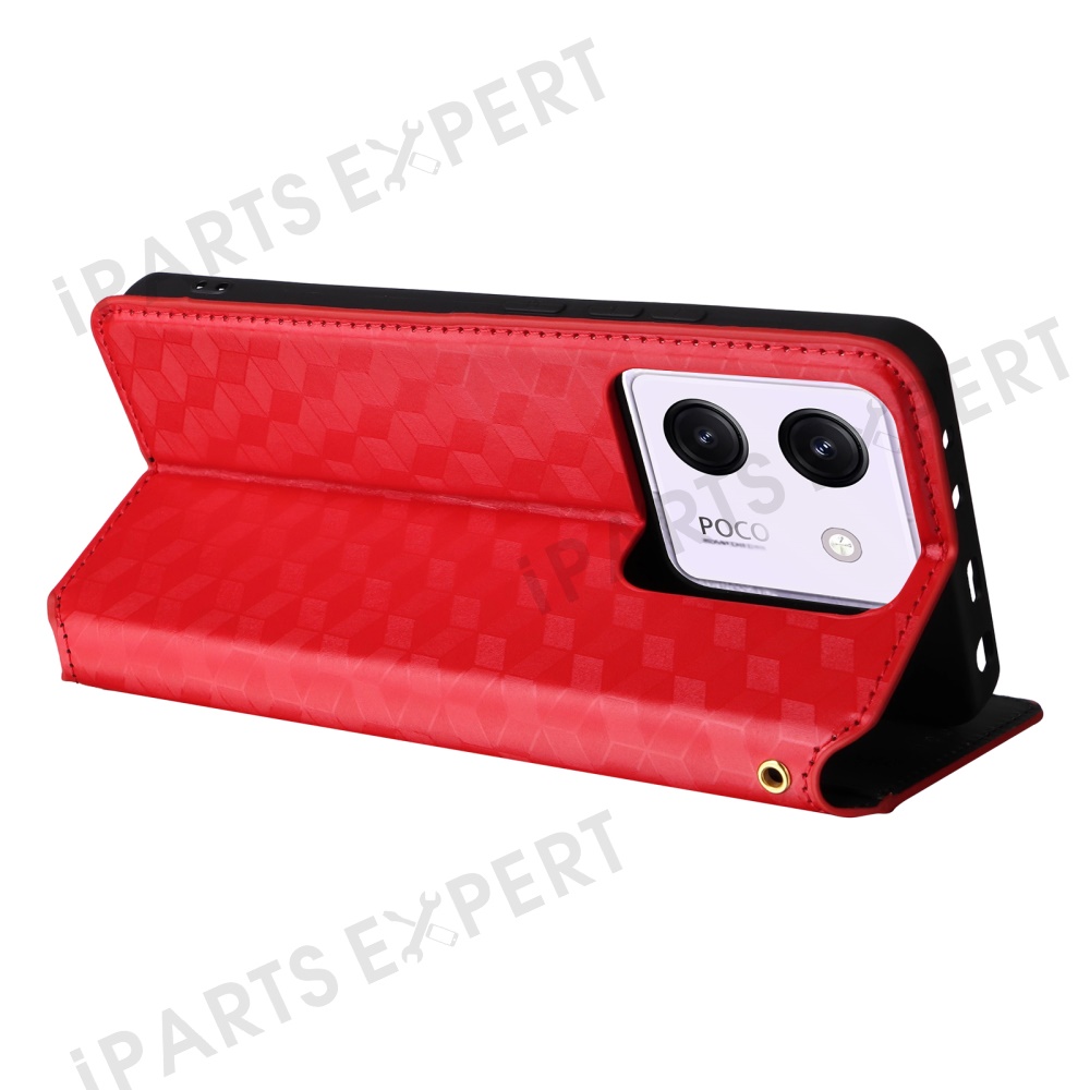 For Xiaomi Poco M7 Pro 5G Wallet Case Rhombus Imprinted Leather Phone Cover - Red