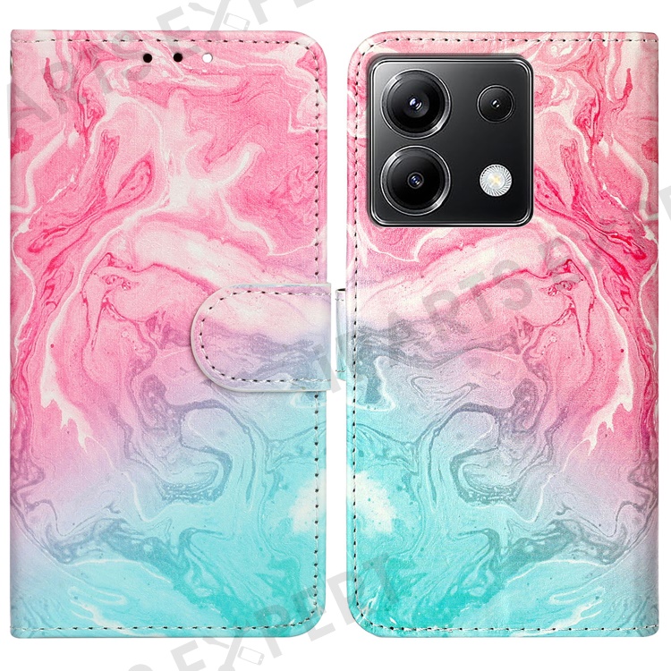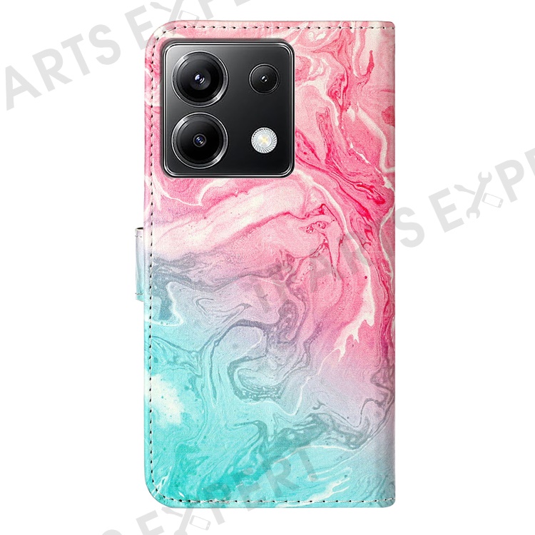 For Xiaomi Poco X6 5G / Redmi Note 13 Pro 5G Case Pattern PU Leather Flip Phone Cover - Pink Green Marble