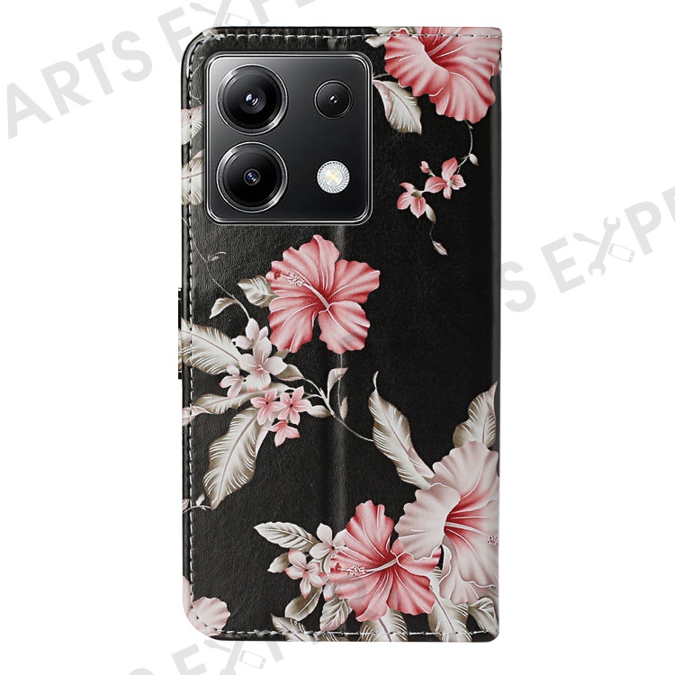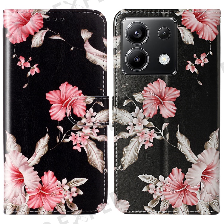 For Xiaomi Poco X6 5G / Redmi Note 13 Pro 5G Case Pattern PU Leather Flip Phone Cover - Rhododendron
