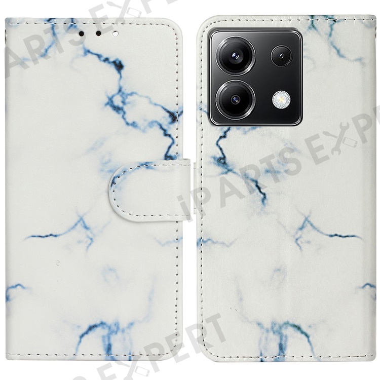 For Xiaomi Poco X6 5G / Redmi Note 13 Pro 5G Case Pattern PU Leather Flip Phone Cover - White Marble
