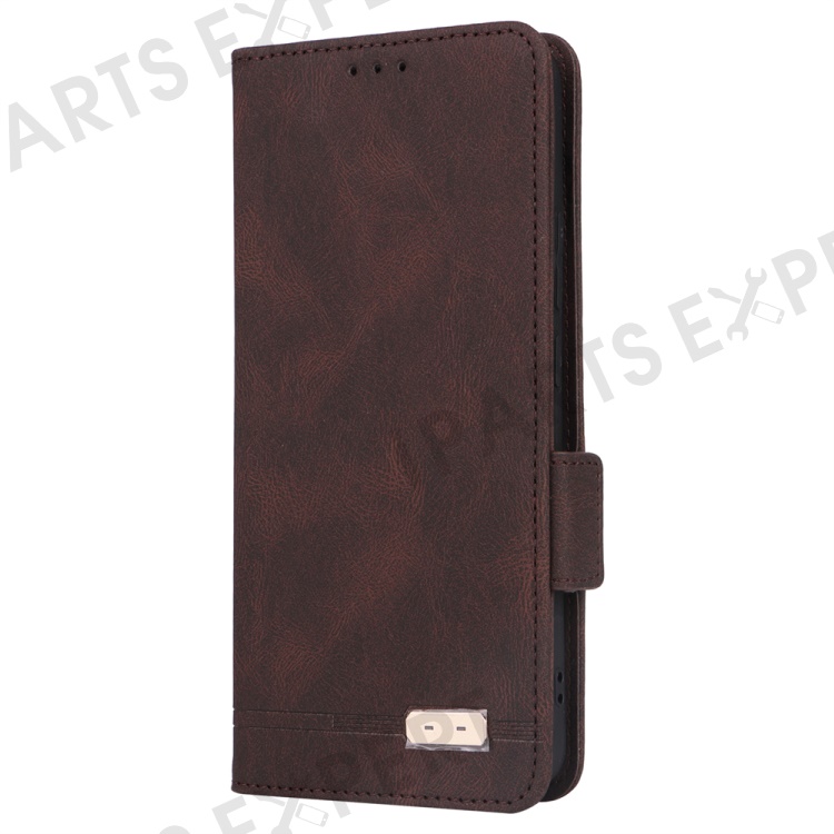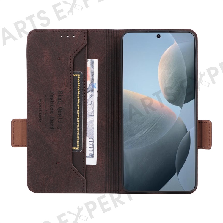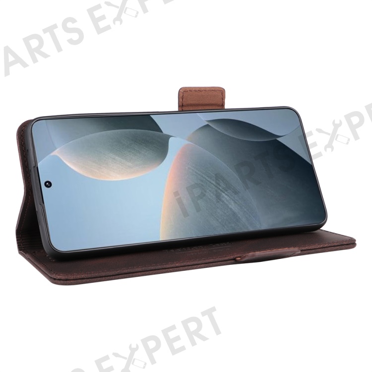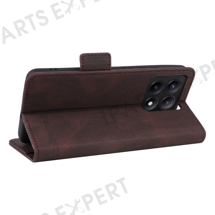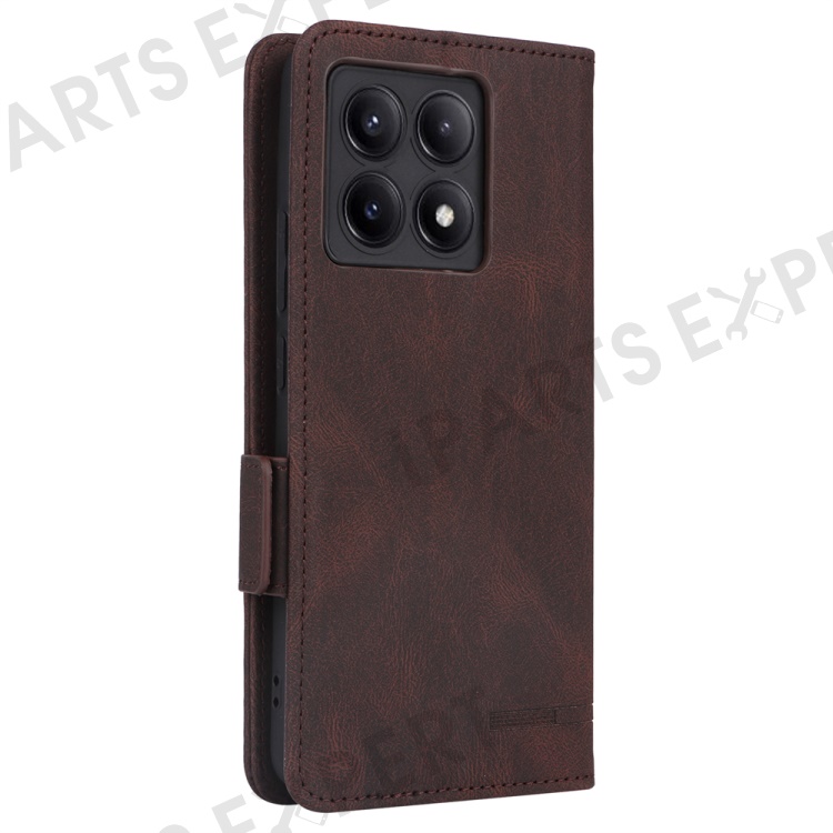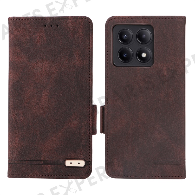 For Xiaomi Poco X6 Pro 5G / Redmi K70E 5G Leather Case Wallet Phone Cover Hardware Decor - Coffee