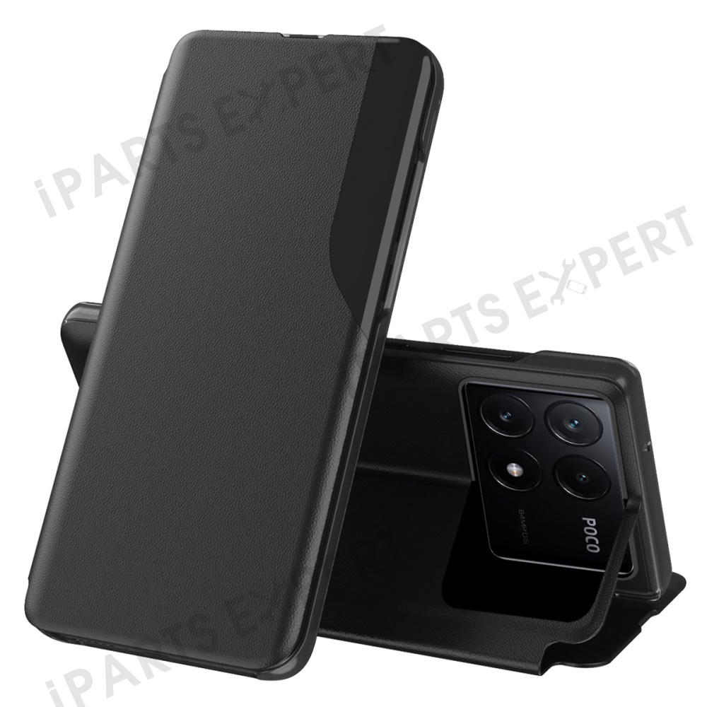 For Xiaomi Poco X6 Pro 5G / Redmi K70E 5G Phone Case Folio Flip PU Leather Stand Cover - Black