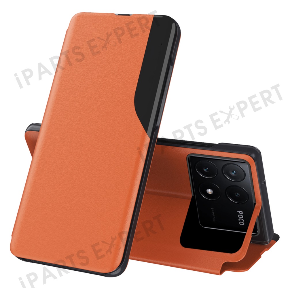 For Xiaomi Poco X6 Pro 5G / Redmi K70E 5G Phone Case Folio Flip PU Leather Stand Cover - Orange