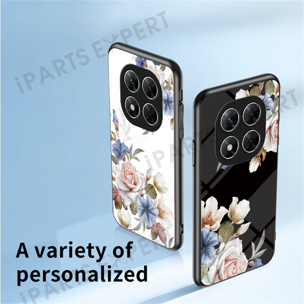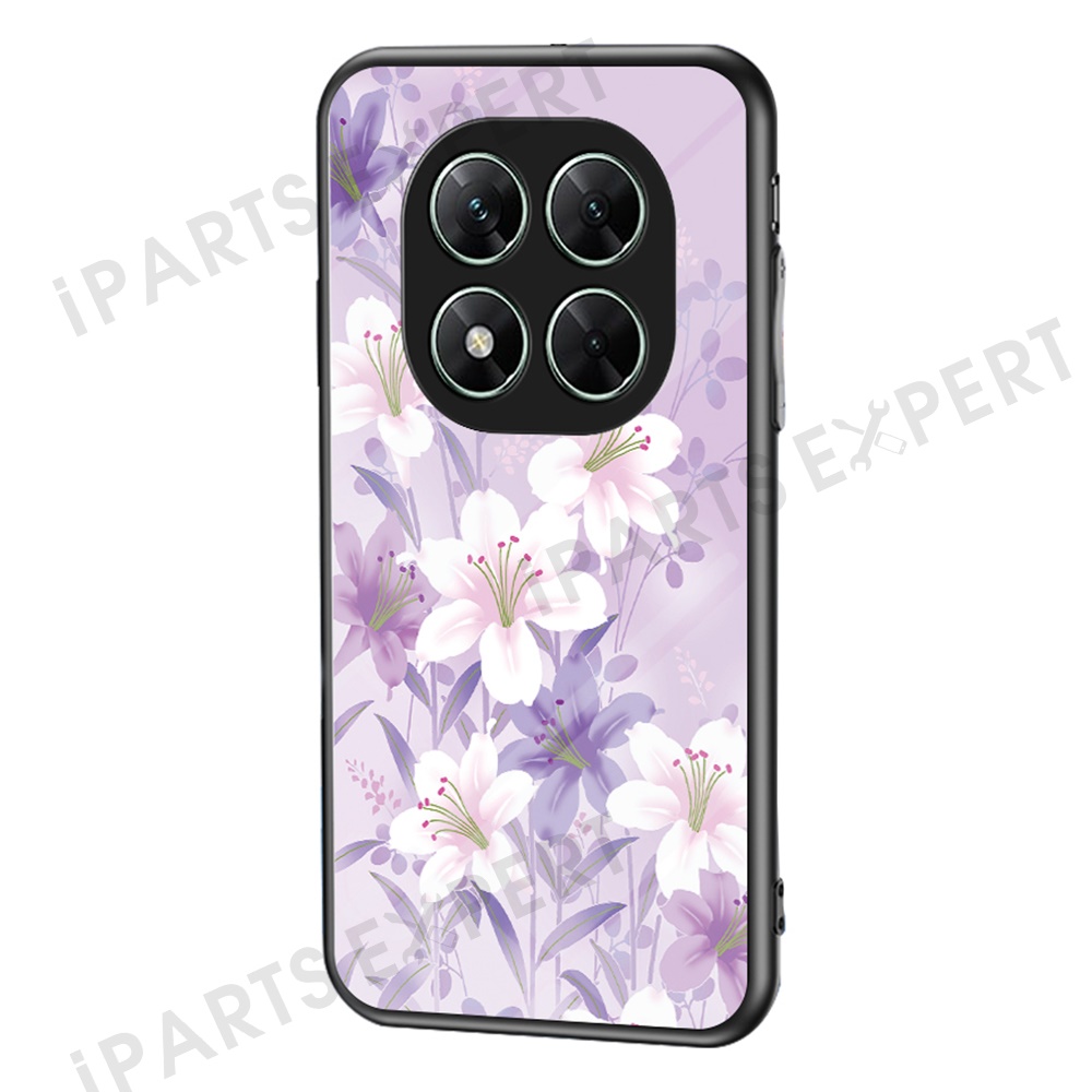 For Xiaomi Poco X7 5G / Redmi Note 14 Pro 5G Case Floral Pattern TPU + Tempered Glass Protective Phone Cover - Purple Magnolia