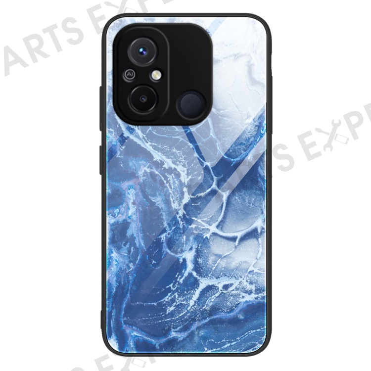 For Xiaomi Redmi 11A 4G / 12C 4G Phone Case Marble Pattern Tempered Glass + PC + TPU Protective Phone Cover - DL03