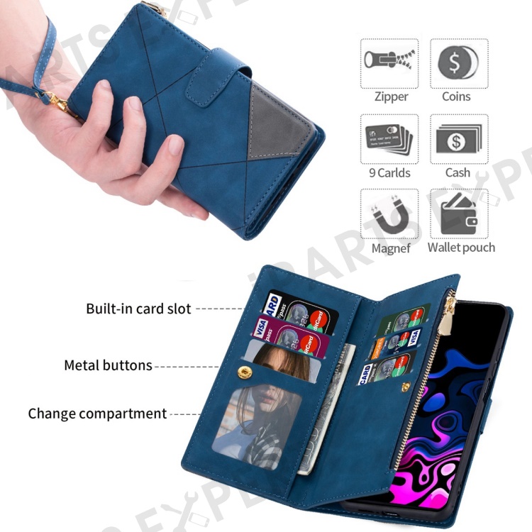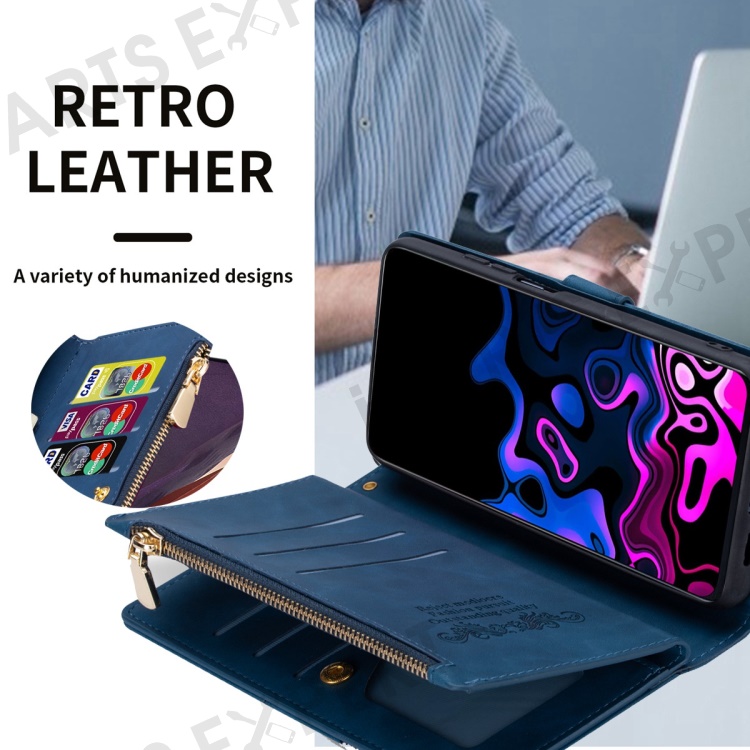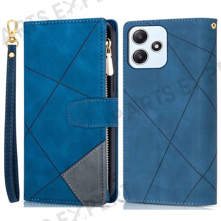 For Xiaomi Redmi 12 4G / 5G (Global) / Poco M6 Pro 5G Case Zipper Pocket Phone Wallet Cover - Blue