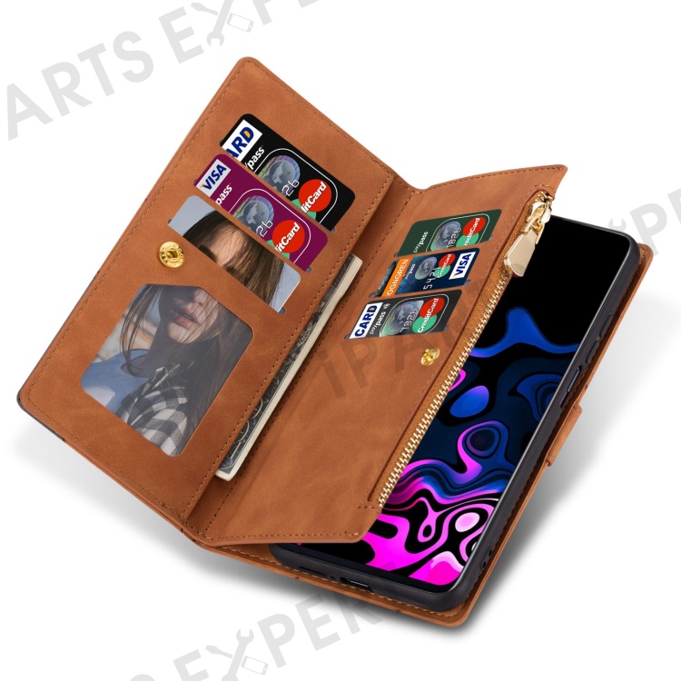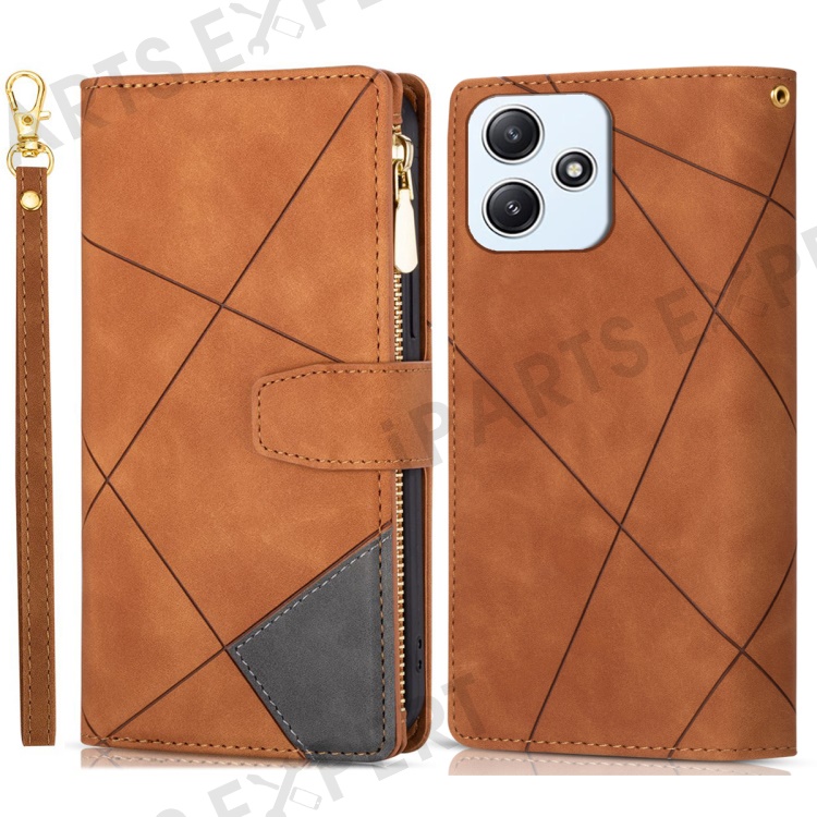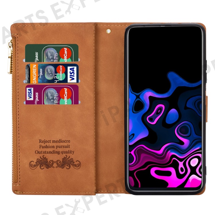 For Xiaomi Redmi 12 4G / 5G (Global) / Poco M6 Pro 5G Case Zipper Pocket Phone Wallet Cover - Brown