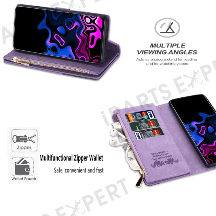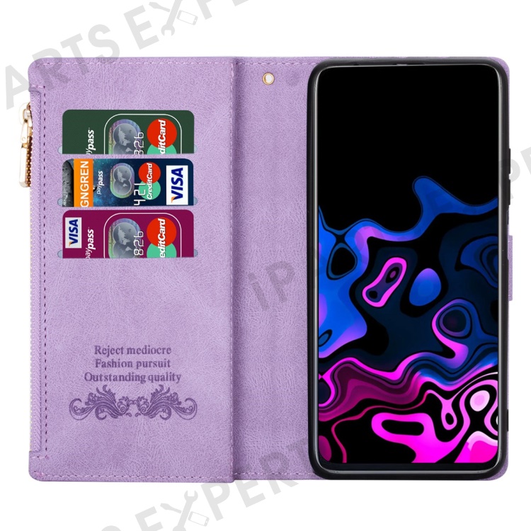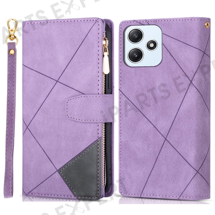 For Xiaomi Redmi 12 4G / 5G (Global) / Poco M6 Pro 5G Case Zipper Pocket Phone Wallet Cover - Purple