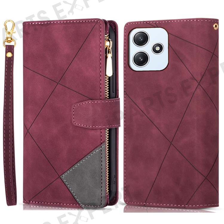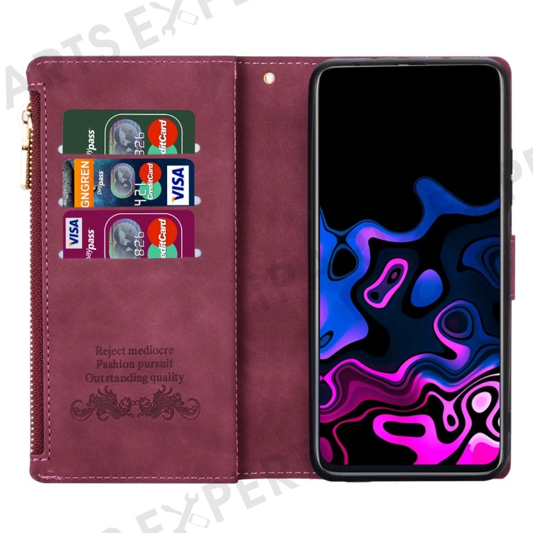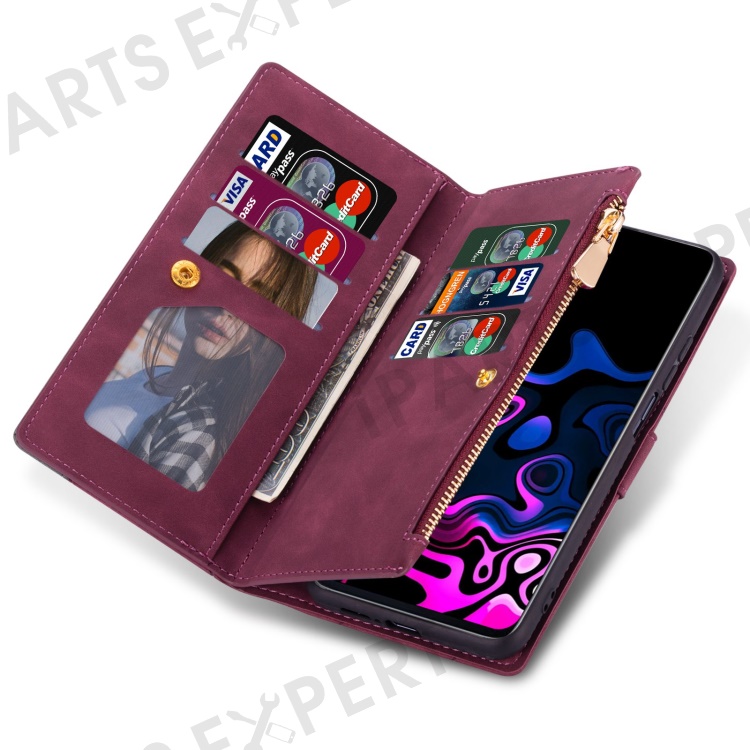 For Xiaomi Redmi 12 4G / 5G (Global) / Poco M6 Pro 5G Case Zipper Pocket Phone Wallet Cover - Red