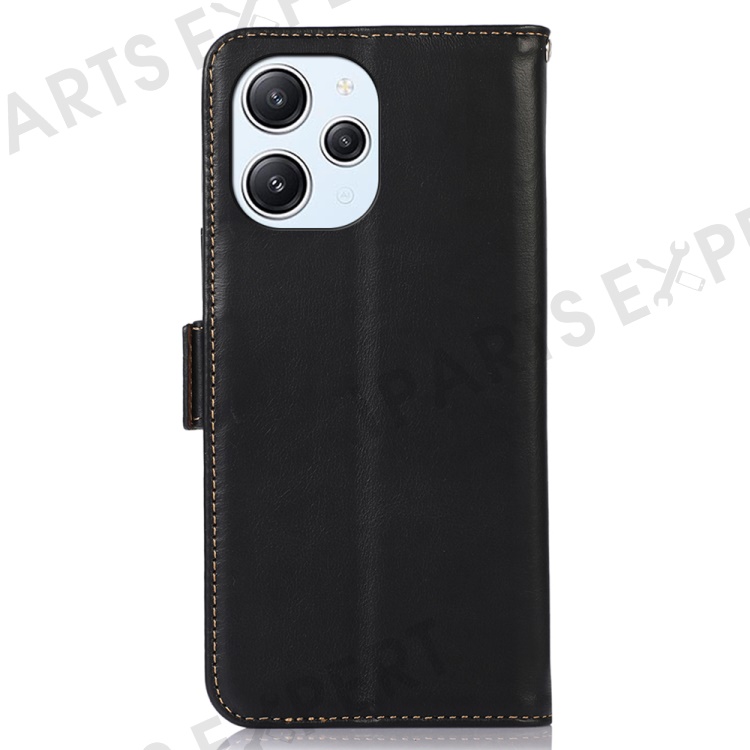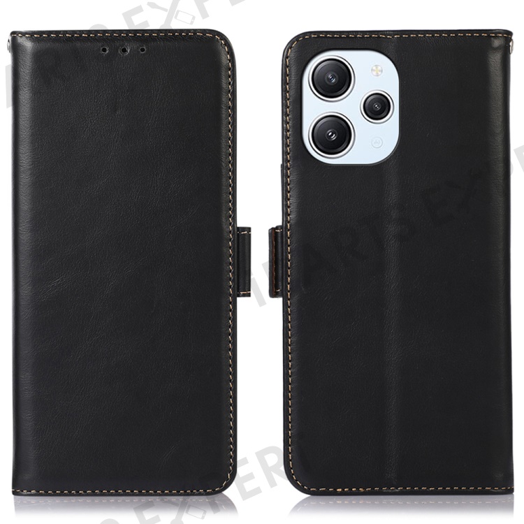 For Xiaomi Redmi 12 4G Wallet Stand Cover RFID Blocking Genuine Cow Leather Phone Crazy Horse Texture Case - Black