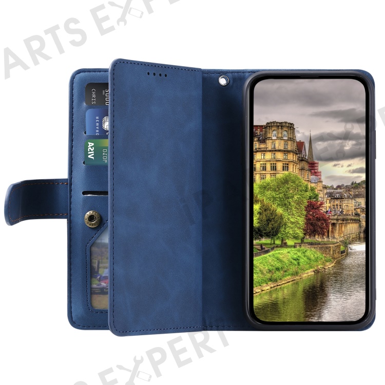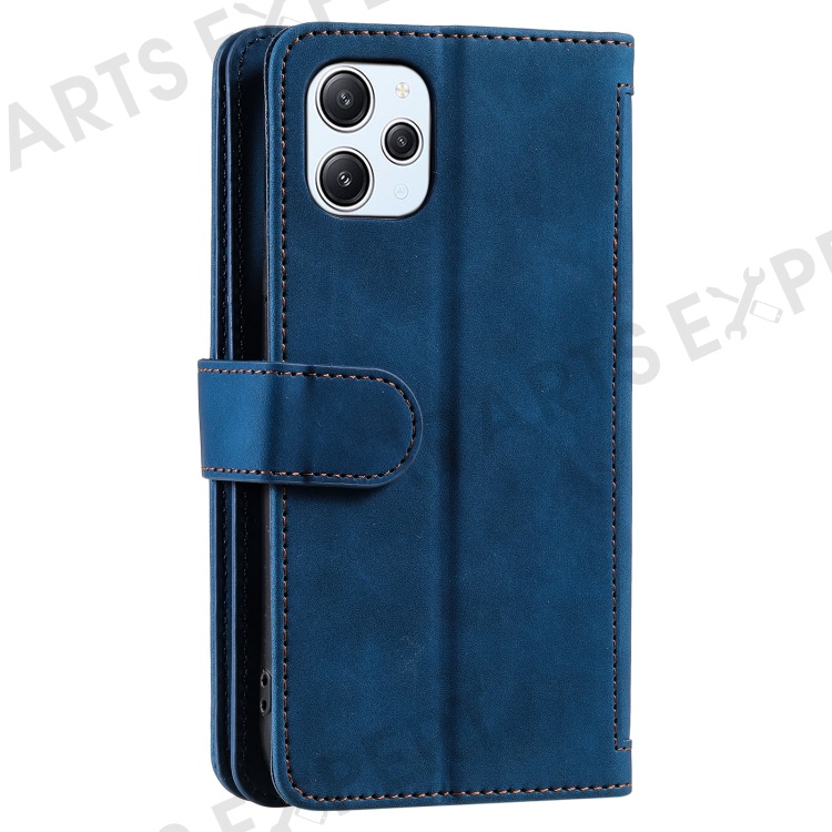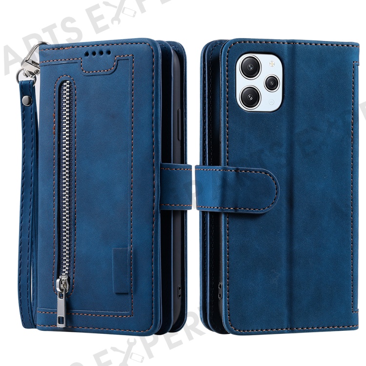 For Xiaomi Redmi 12 4G Zipper Pocket PU Leather Phone Case 9 Card Slots Drop-proof Cover - Blue