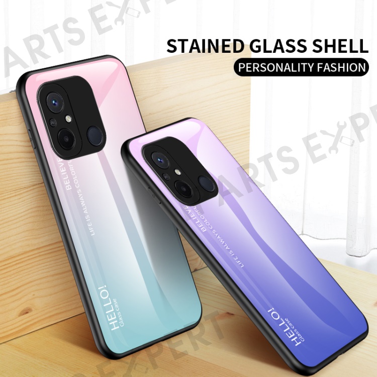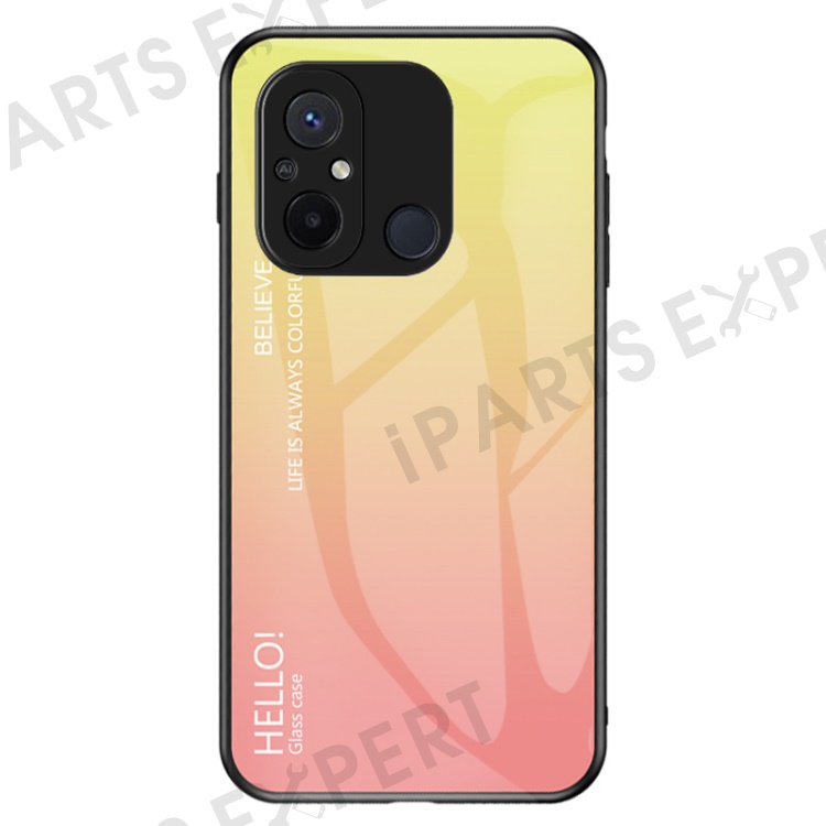 For Xiaomi Redmi 12C 4G Gradient Color Phone Case Tempered Glass+PC+TPU Cover - Gradient Yellow