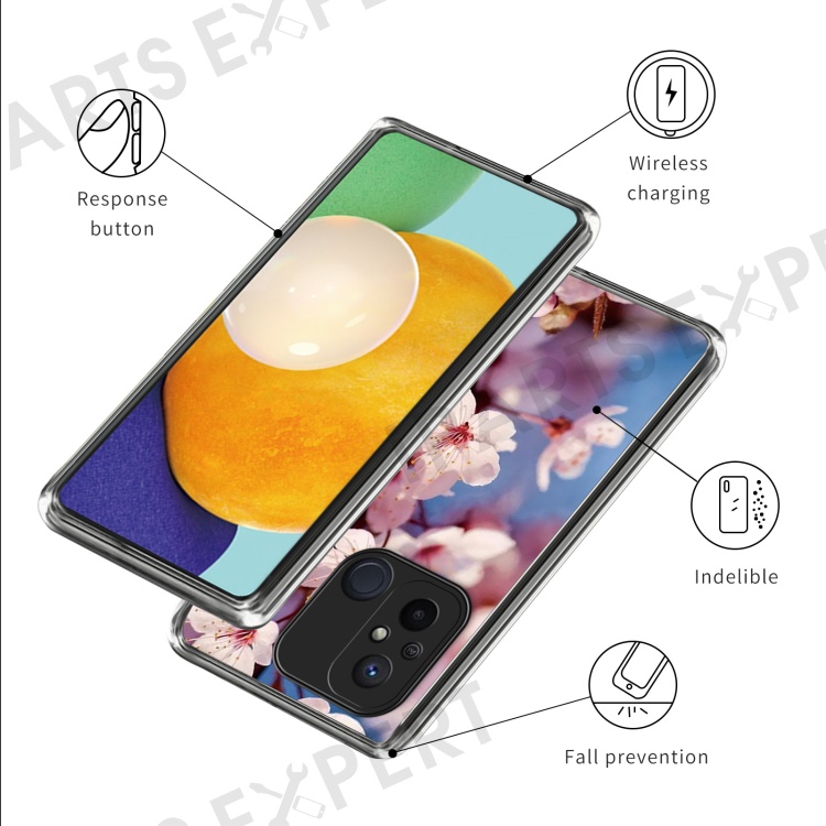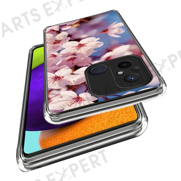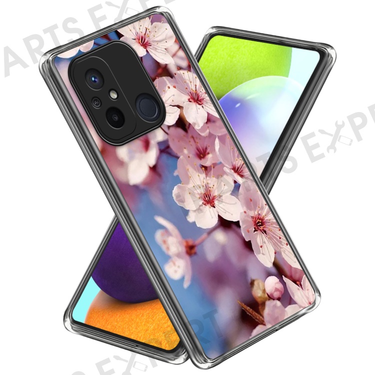 For Xiaomi Redmi 12C 4G Pattern IMD Phone Case Shockproof Protective TPU Back Cover - Peach Blossom