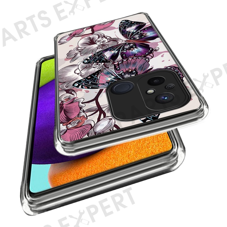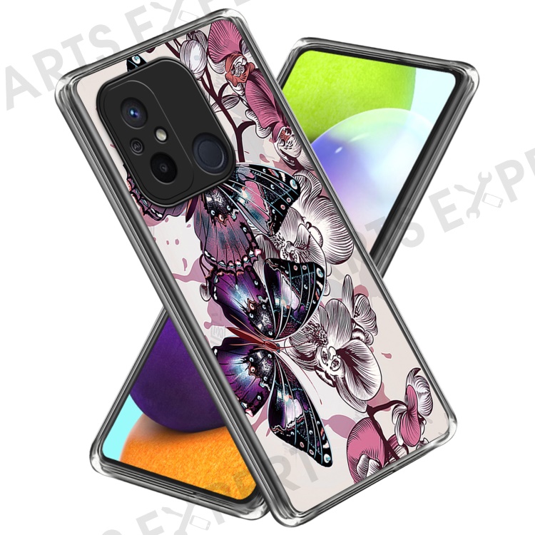 For Xiaomi Redmi 12C 4G Pattern IMD Phone Case Shockproof Protective TPU Back Cover - Purple Butterflies