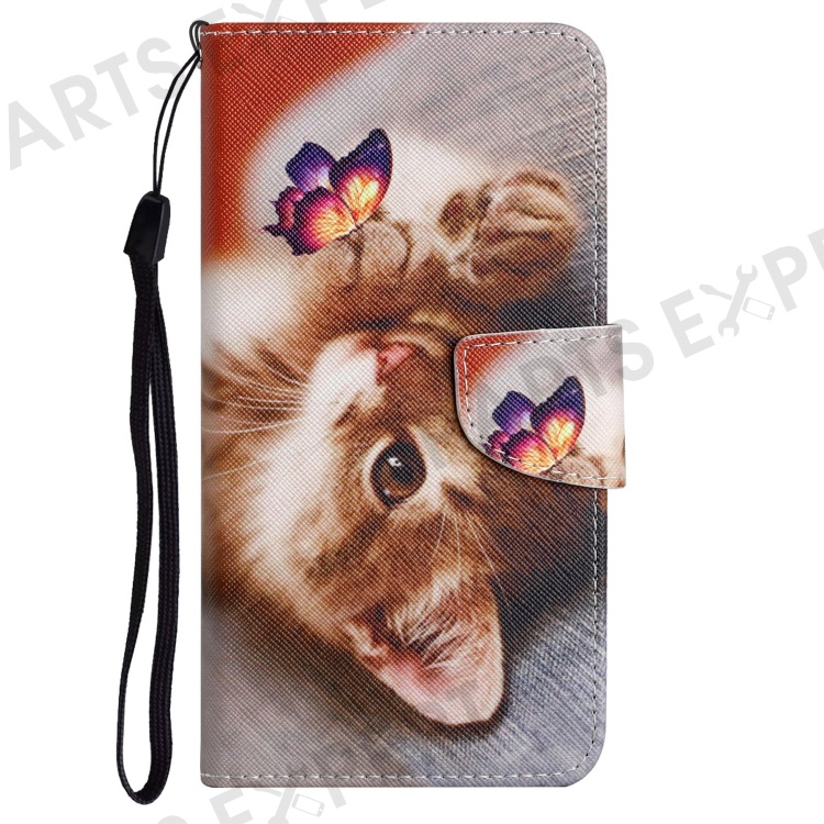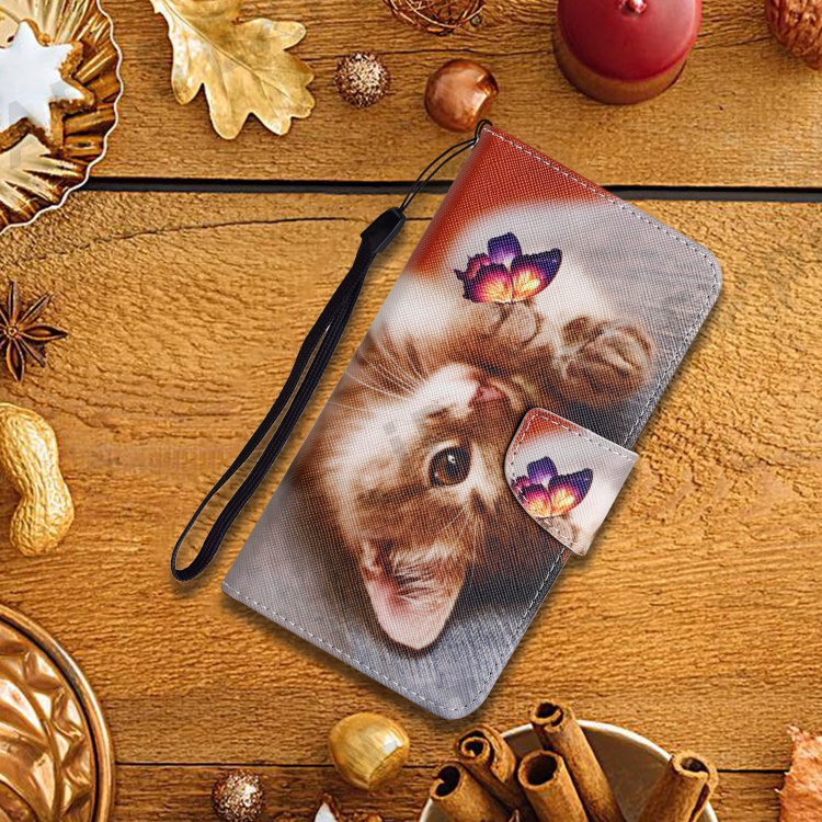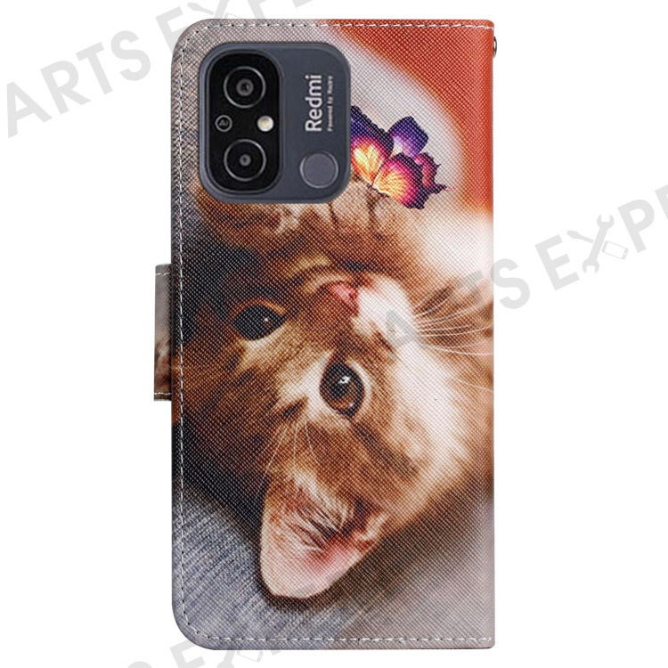 For Xiaomi Redmi 12C 4G PU Leather Flip Phone Case Pattern Printing Stand Wrist Strap Wallet Cover - Butterfly / Cat