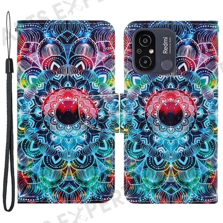 For Xiaomi Redmi 12C 4G PU Leather Flip Phone Case Pattern Printing Stand Wrist Strap Wallet Cover - Mandala