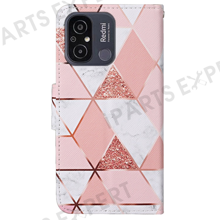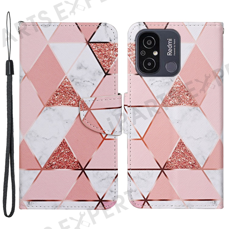 For Xiaomi Redmi 12C 4G PU Leather Flip Phone Case Pattern Printing Stand Wrist Strap Wallet Cover - Marble Pattern
