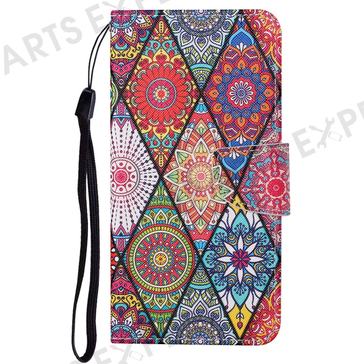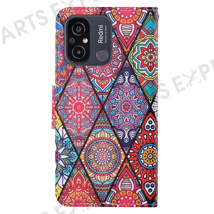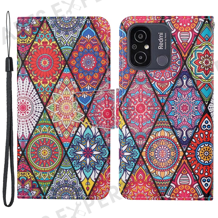 For Xiaomi Redmi 12C 4G PU Leather Flip Phone Case Pattern Printing Stand Wrist Strap Wallet Cover - Rhombus / Totem