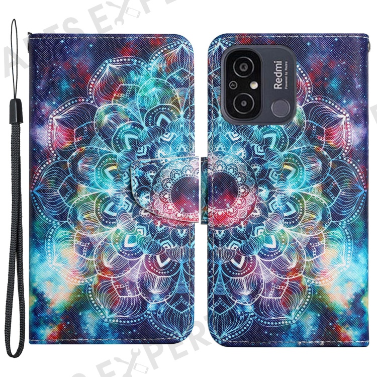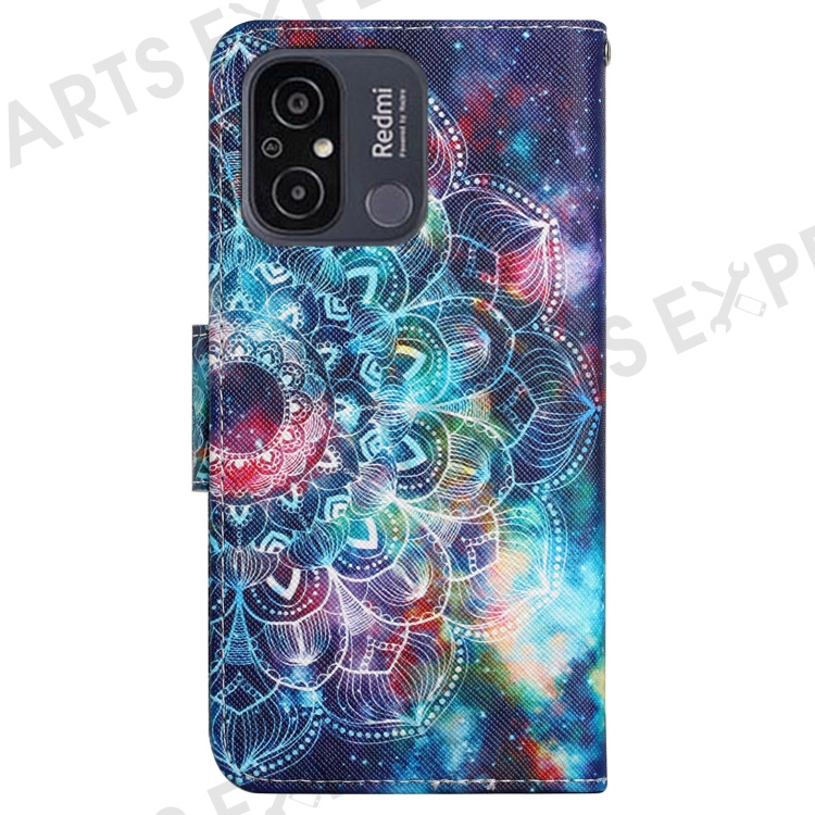 For Xiaomi Redmi 12C 4G PU Leather Flip Phone Case Pattern Printing Stand Wrist Strap Wallet Cover - Starry Sky / Mandala
