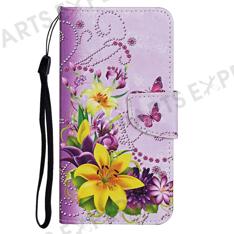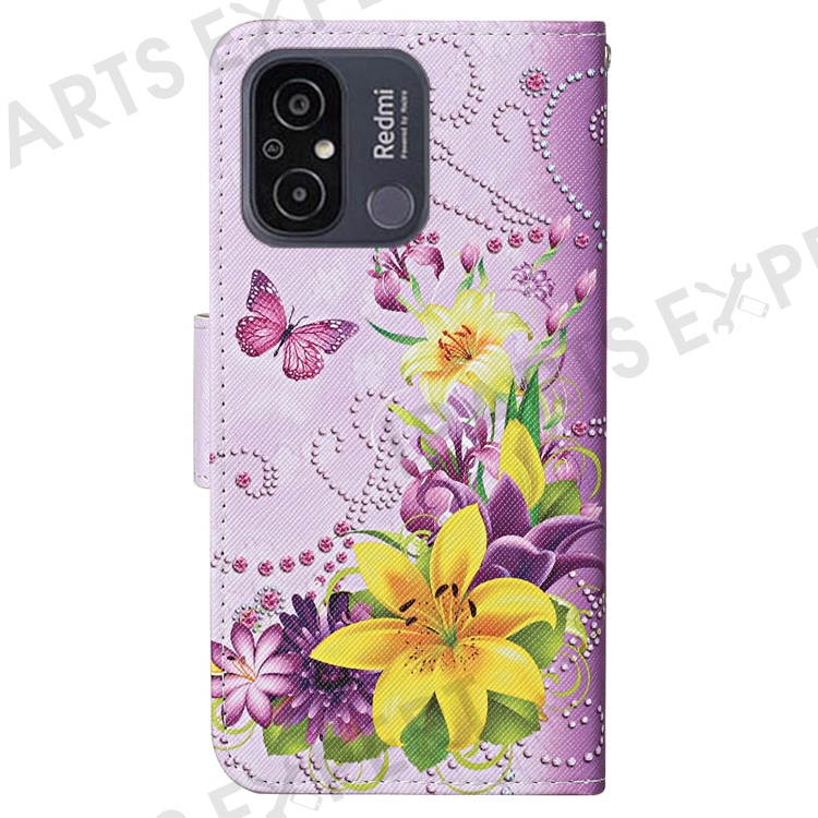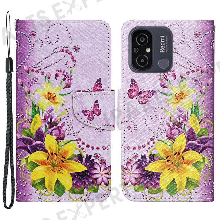 For Xiaomi Redmi 12C 4G PU Leather Flip Phone Case Pattern Printing Stand Wrist Strap Wallet Cover - Yellow Flowers / Butterflies