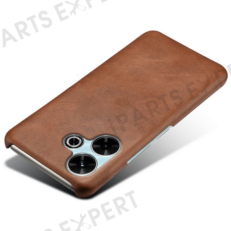 For Xiaomi Redmi 13 4G Case Calf Texture PU Leather Hard PC Protective Phone Cover - Brown