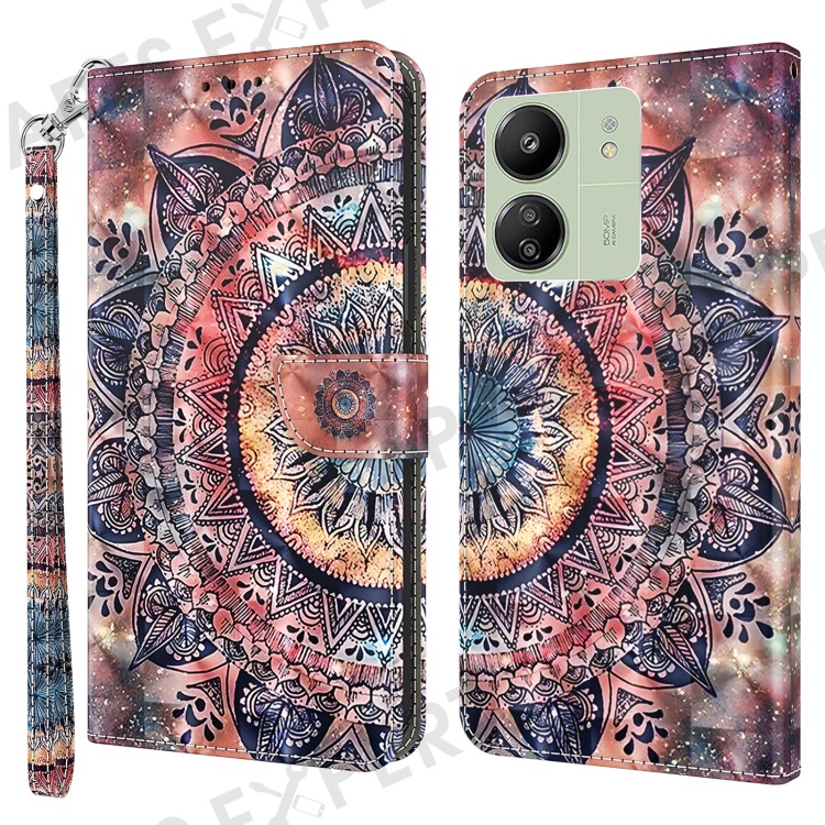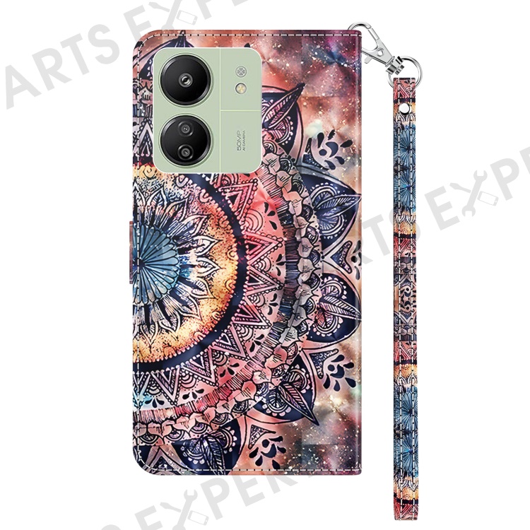 For Xiaomi Redmi 13C 4G / 13C 5G / Poco C65 4G / Poco M6 5G / 13R 5G Magnetic Phone Case 3D Pattern Printing Wallet Cover - Color Mandala