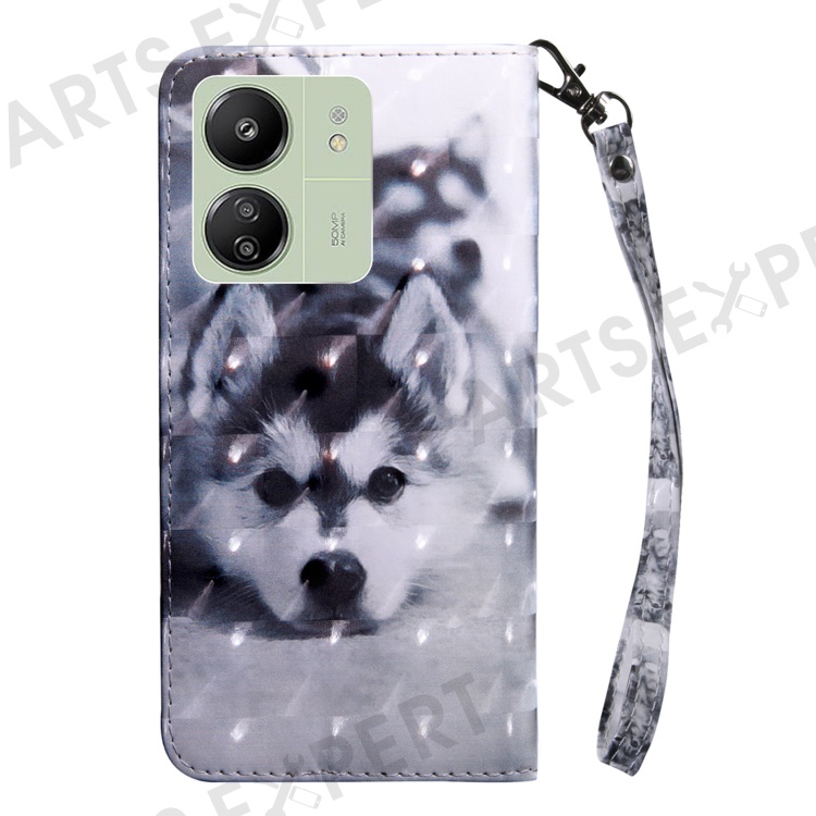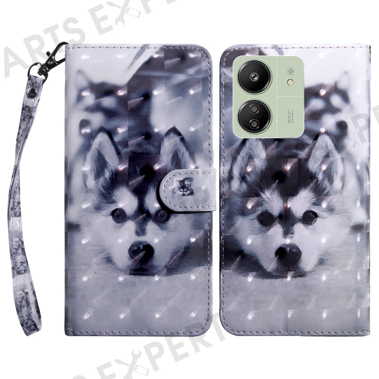 For Xiaomi Redmi 13C 4G / 13C 5G / Poco C65 4G / Poco M6 5G / 13R 5G Magnetic Phone Case 3D Pattern Printing Wallet Cover - Husky
