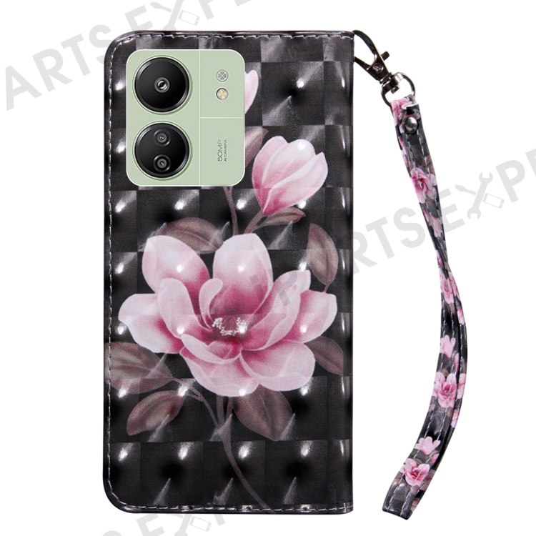 For Xiaomi Redmi 13C 4G / 13C 5G / Poco C65 4G / Poco M6 5G / 13R 5G Magnetic Phone Case 3D Pattern Printing Wallet Cover - Pink Flower