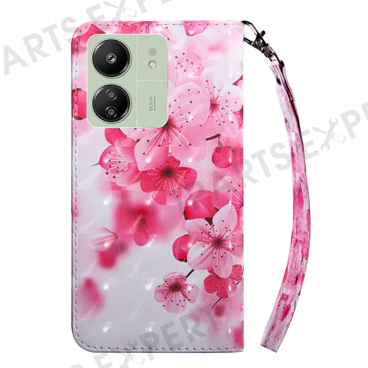 For Xiaomi Redmi 13C 4G / 13C 5G / Poco C65 4G / Poco M6 5G / 13R 5G Magnetic Phone Case 3D Pattern Printing Wallet Cover - Red Flower